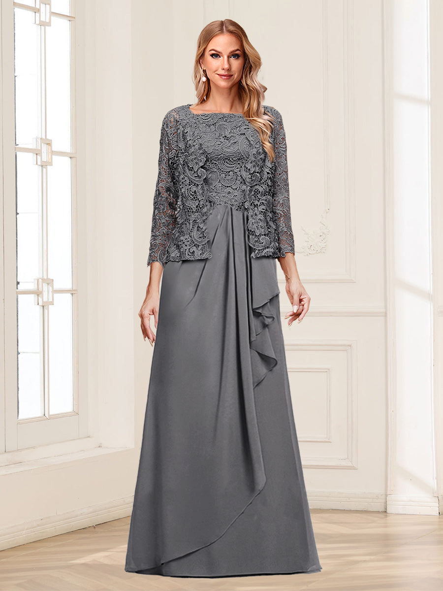 #Lysandra A22441666 Lace Chiffon Square Neck 3/4 Sleeves 2 Pieces Mother of the Bride Dresses with Appliques & Jacket