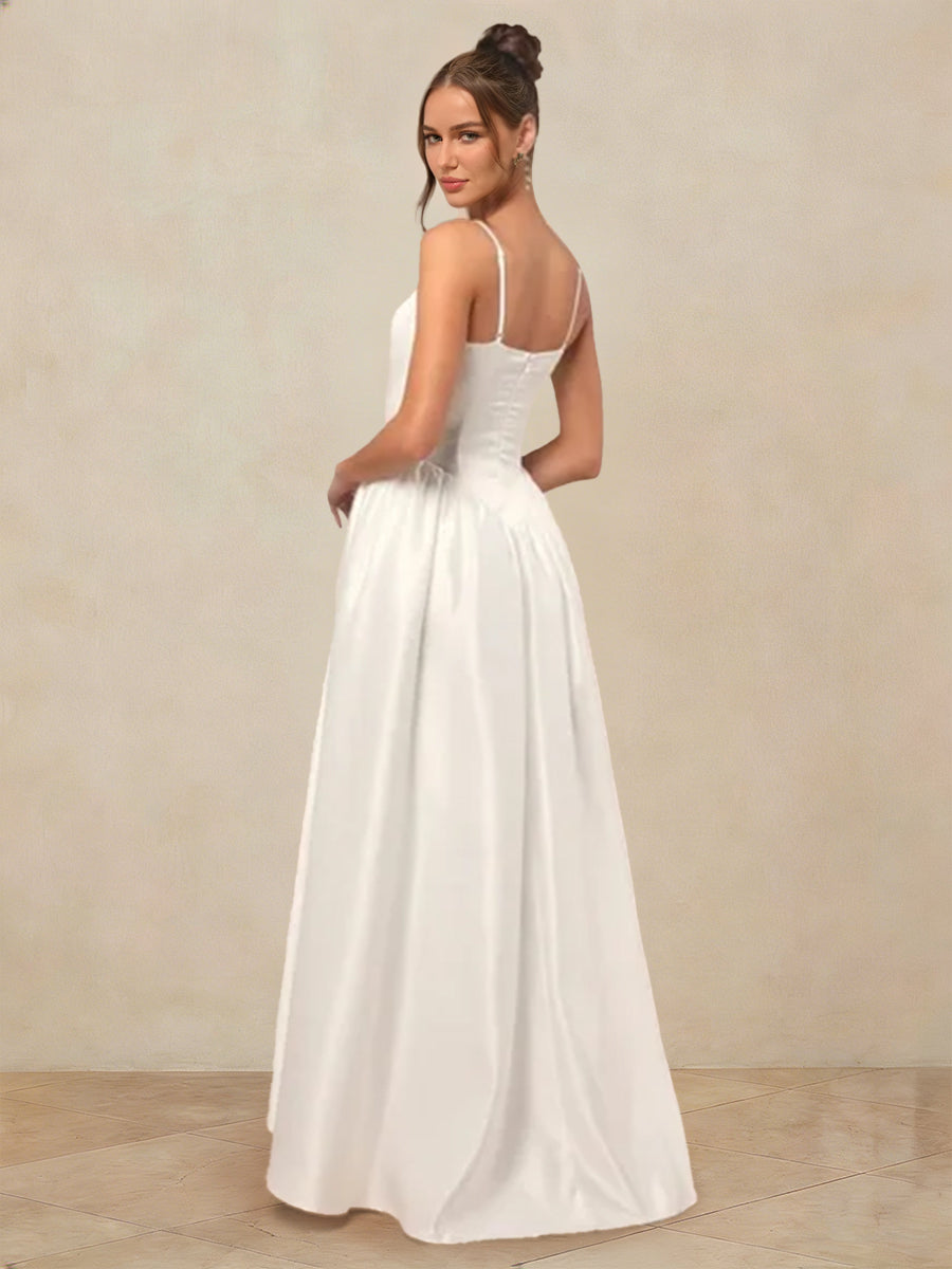 #Smith 12011887 A-Line/Princess Spaghetti Straps Sleeveless Basque Waist Prom Dresses with Ruched