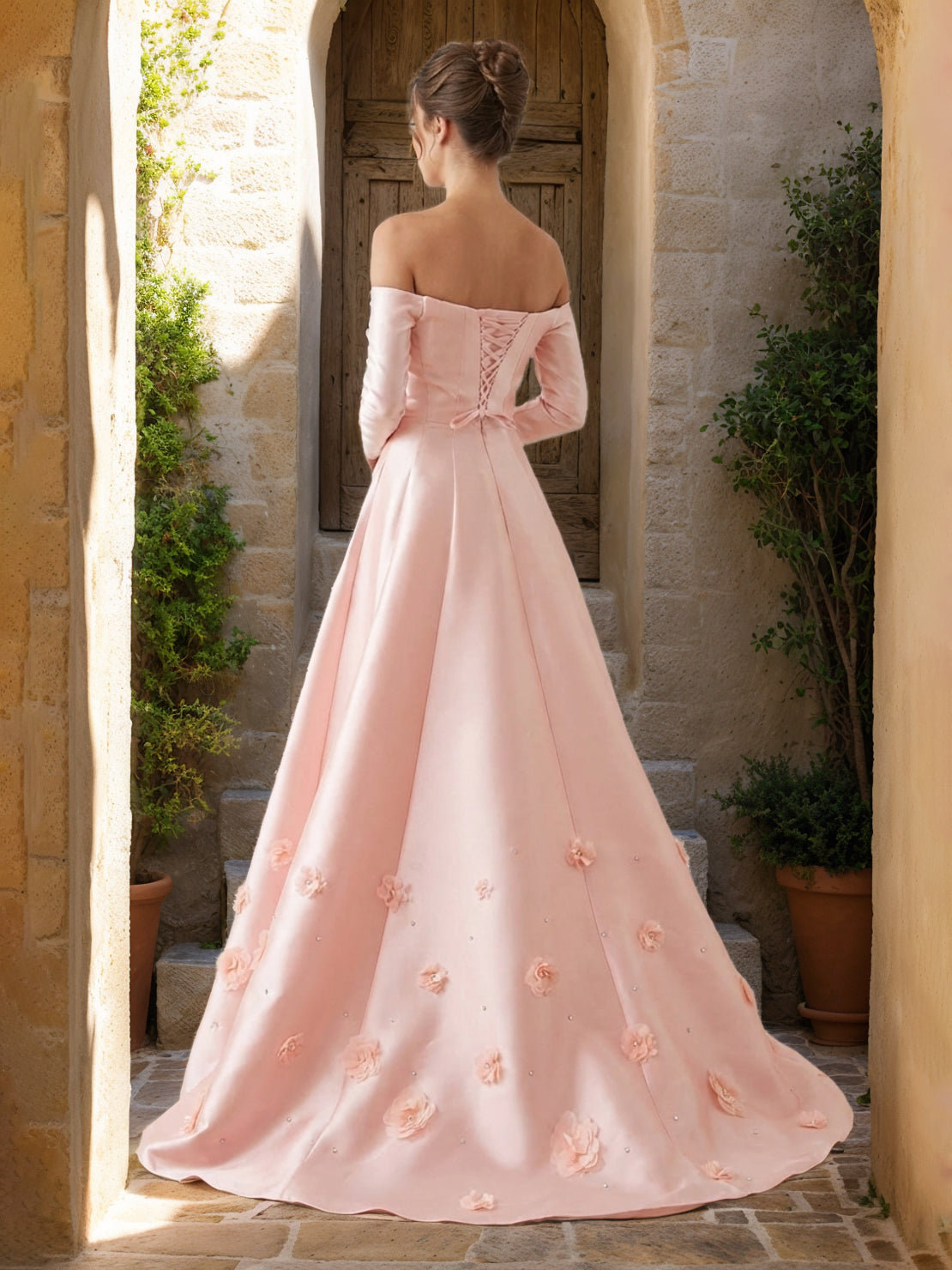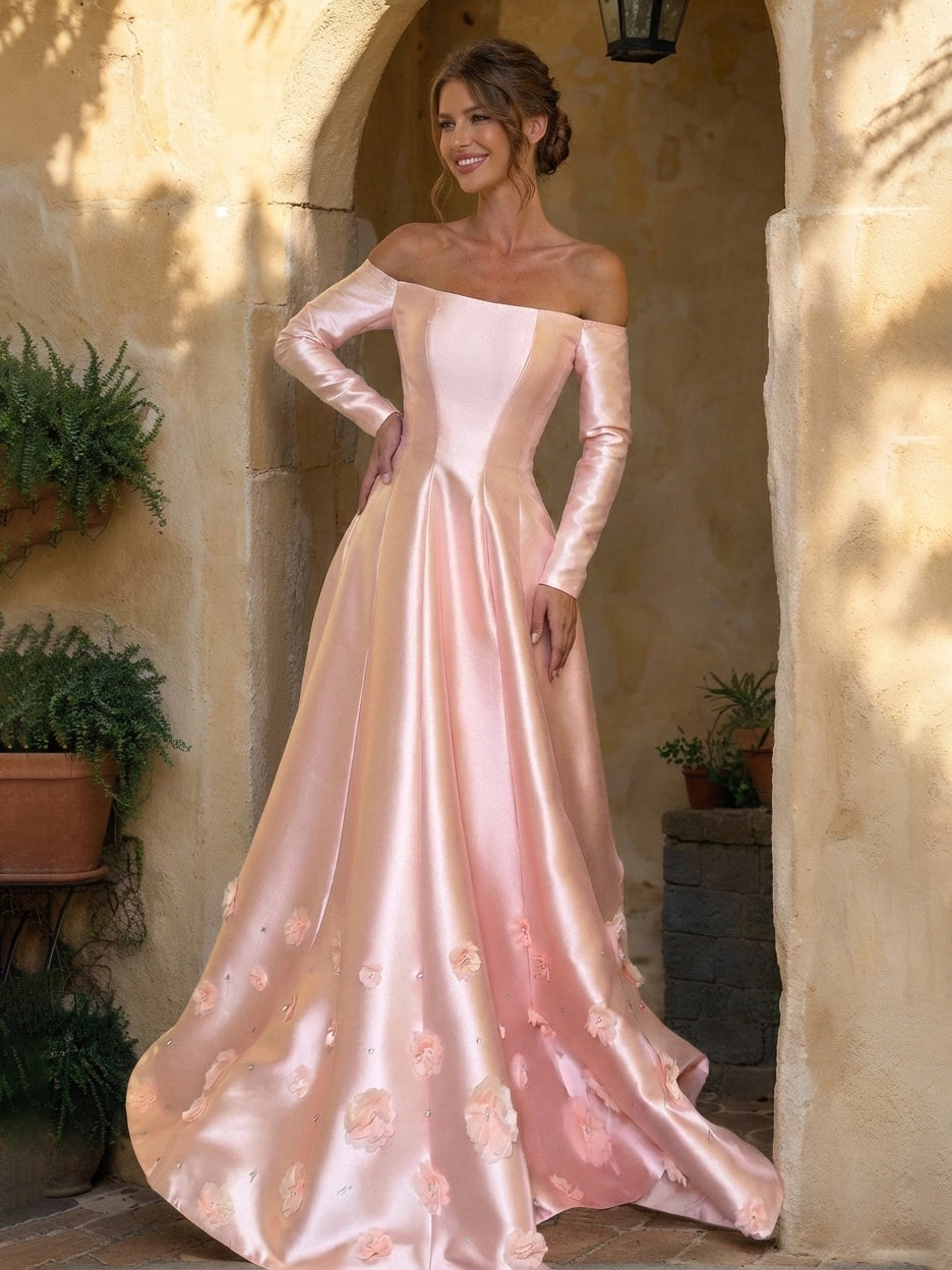 #Ina 12011833 A-Line/Princess Strapless Long Sleeves Prom Dresses with 3D Flowers