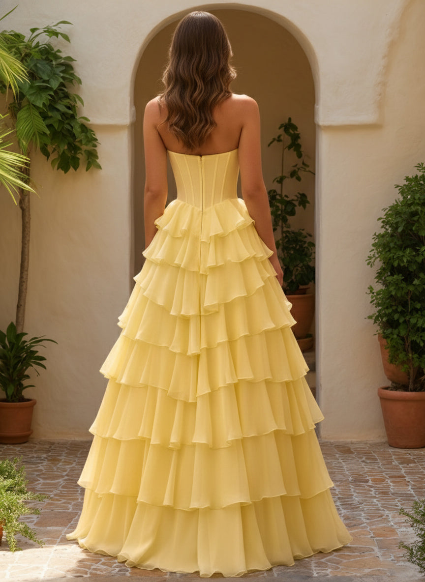 #Ulysses 12011894 A-Line/Princess Sweetheart Ruffle Tiered Basque Waist Prom Dresses with Split Side