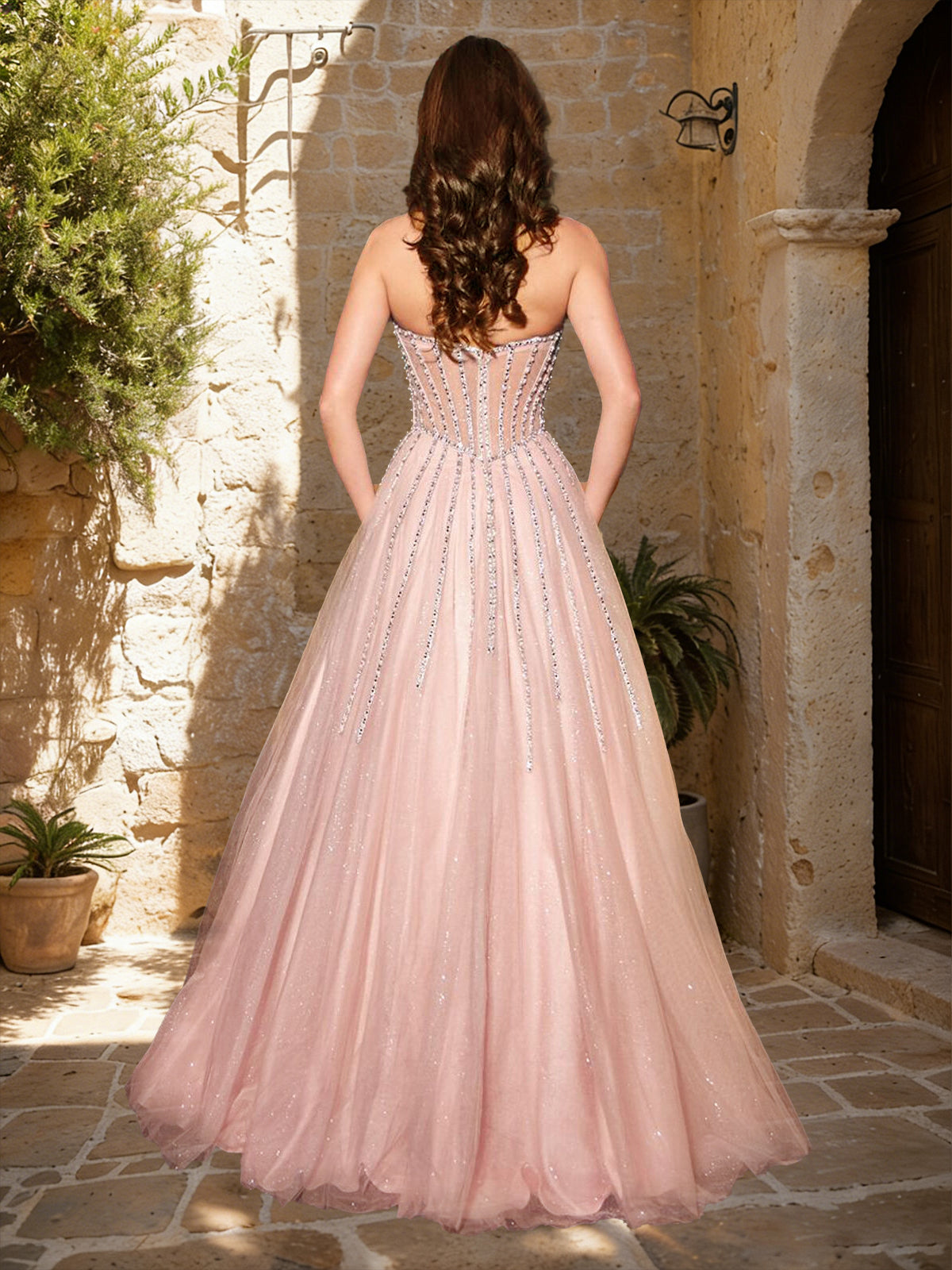 #Poppy 12011885 A-Line/Princess Sweetheart Strapless Basque Waist Floor-Length Prom Dresses With Rhinestone