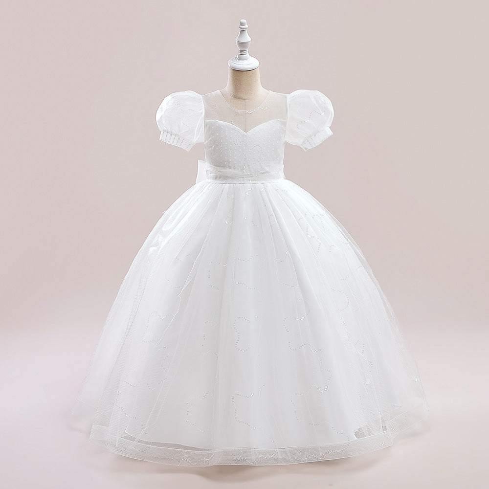 #Wara 9661049 Ball Gown Scoop Puff Sleeves Flower Girl Dresses with Sequins
