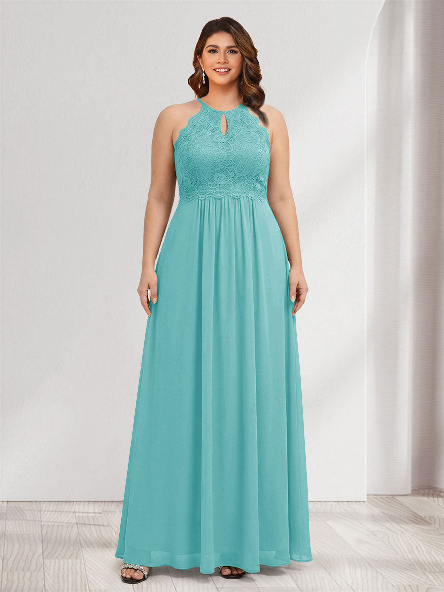 #Alayah 12011794P A-Line/Princess Crew Neck Keyhole Plus Size Bridesmaid Dresses with Lace