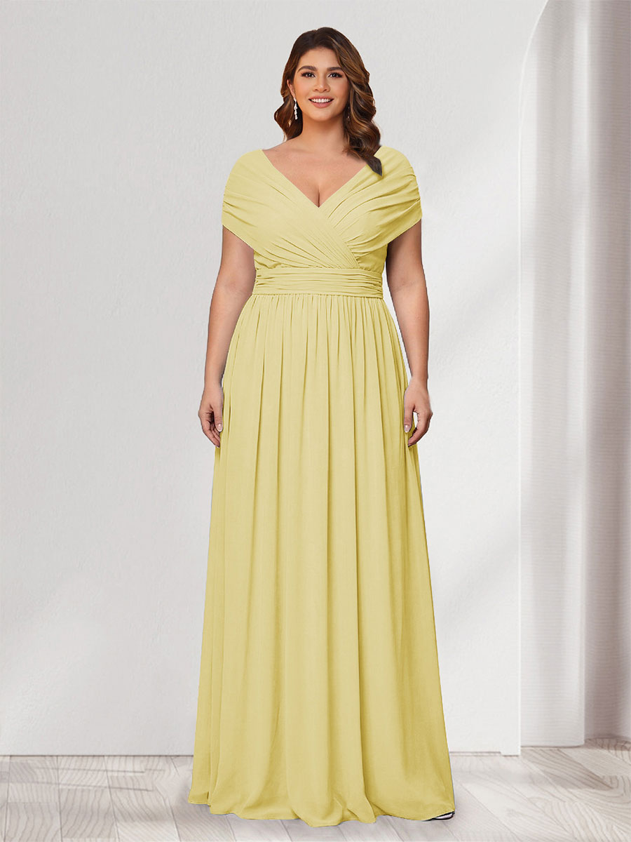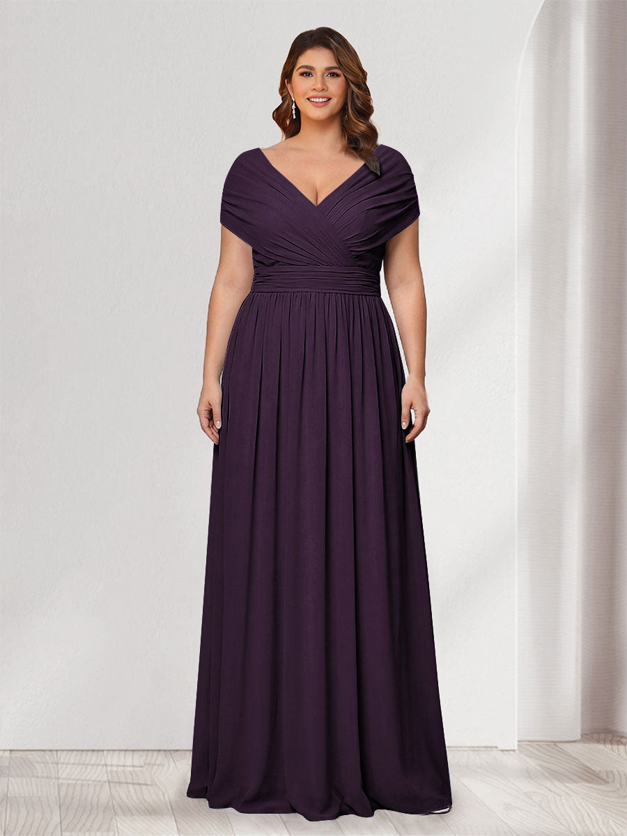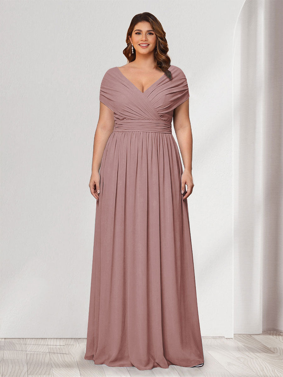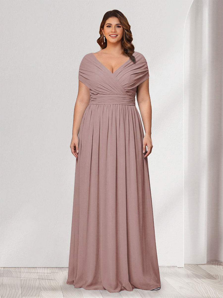 #Winter 12011905P A-Line/Princess V-Neck Short Sleeves Chiffon Plus Size Bridesmaid Dresses With Bowknot