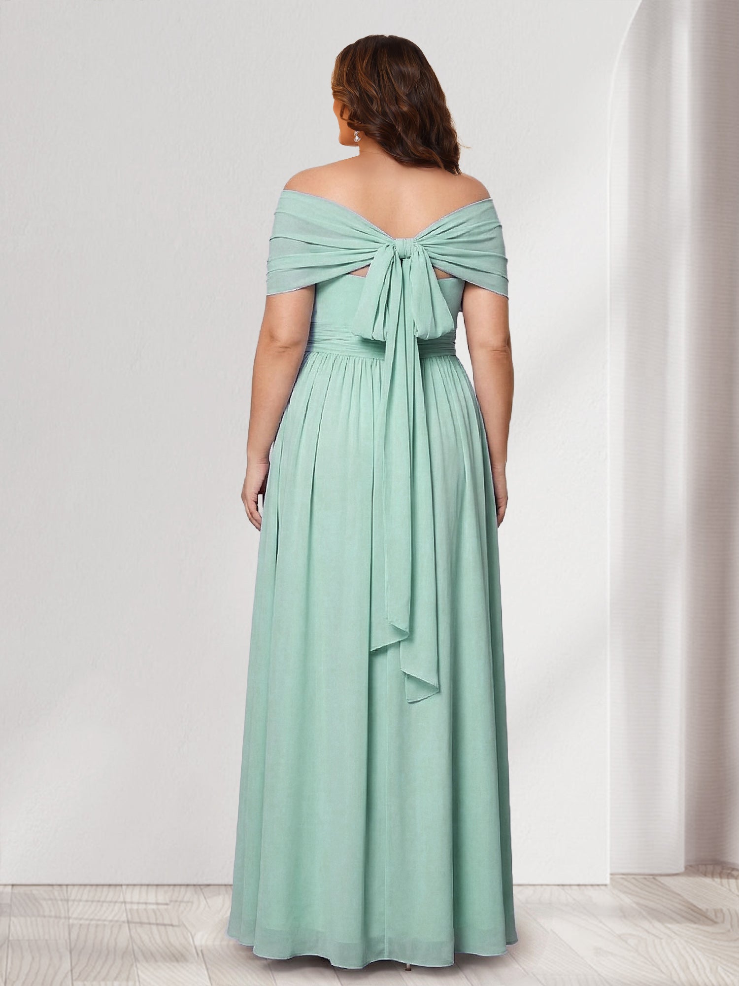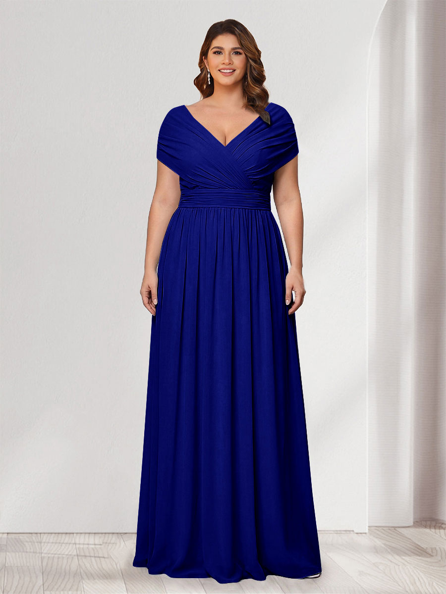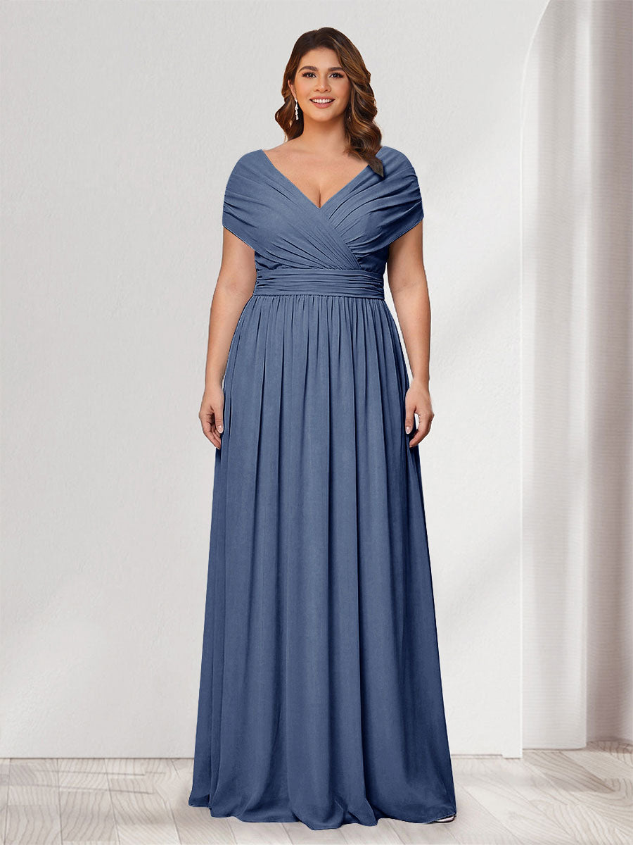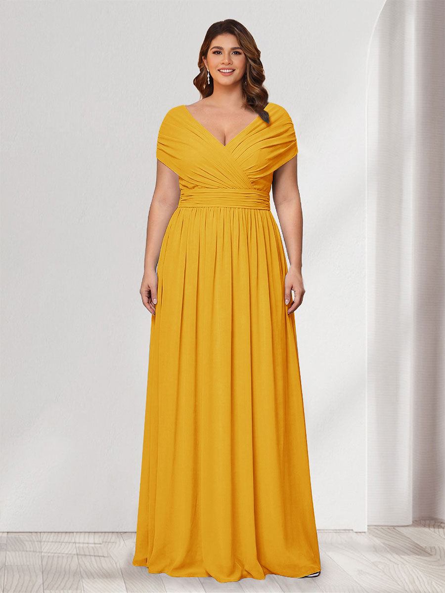 #Winter 12011905P A-Line/Princess V-Neck Short Sleeves Chiffon Plus Size Bridesmaid Dresses With Bowknot