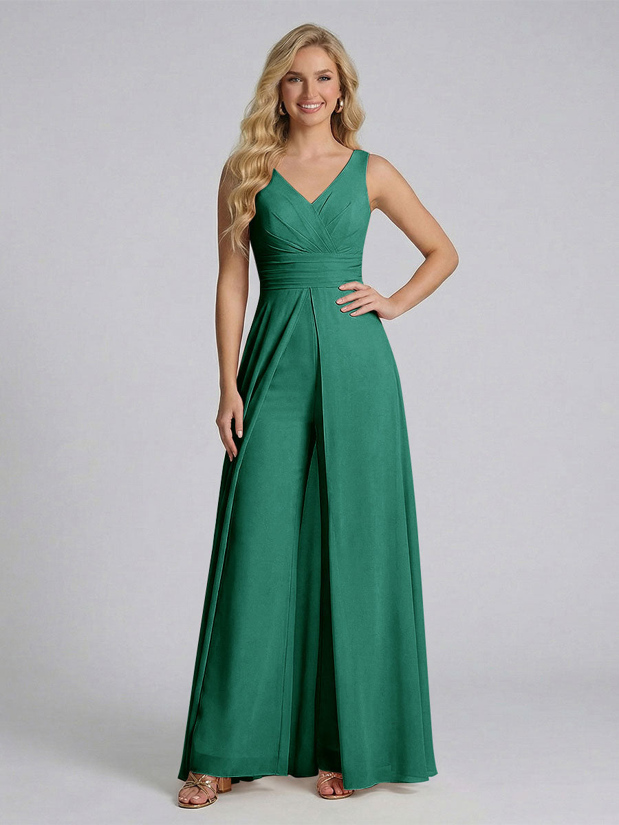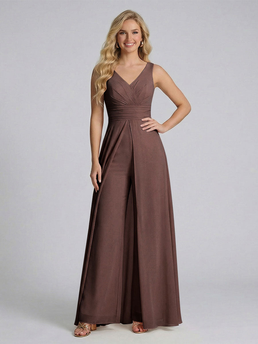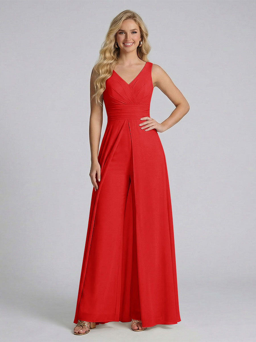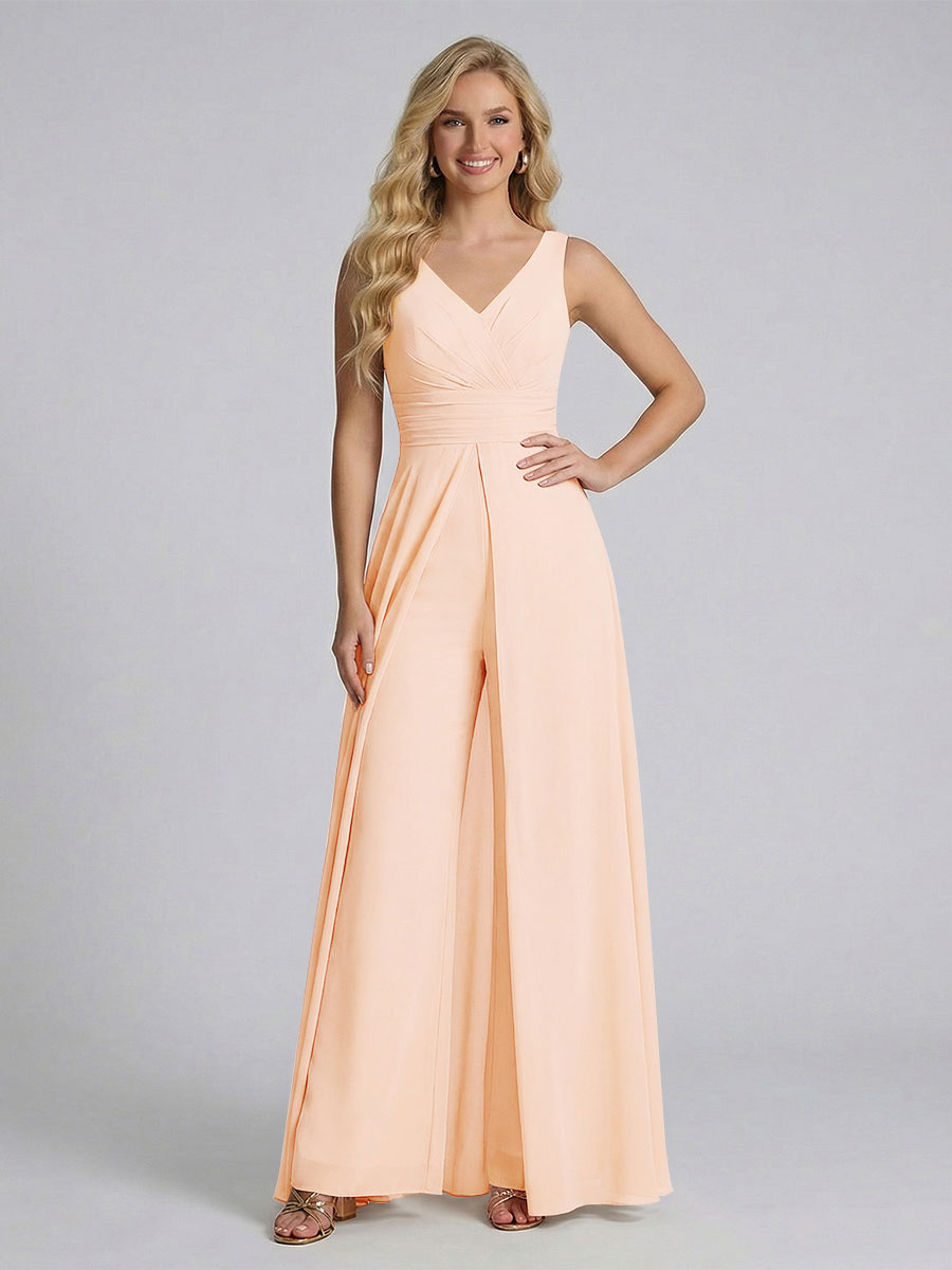 #Ackermann 12011909 Jumpsuit V-Neck Sleeveless Chiffon Bridesmaid Dresses with Split Side