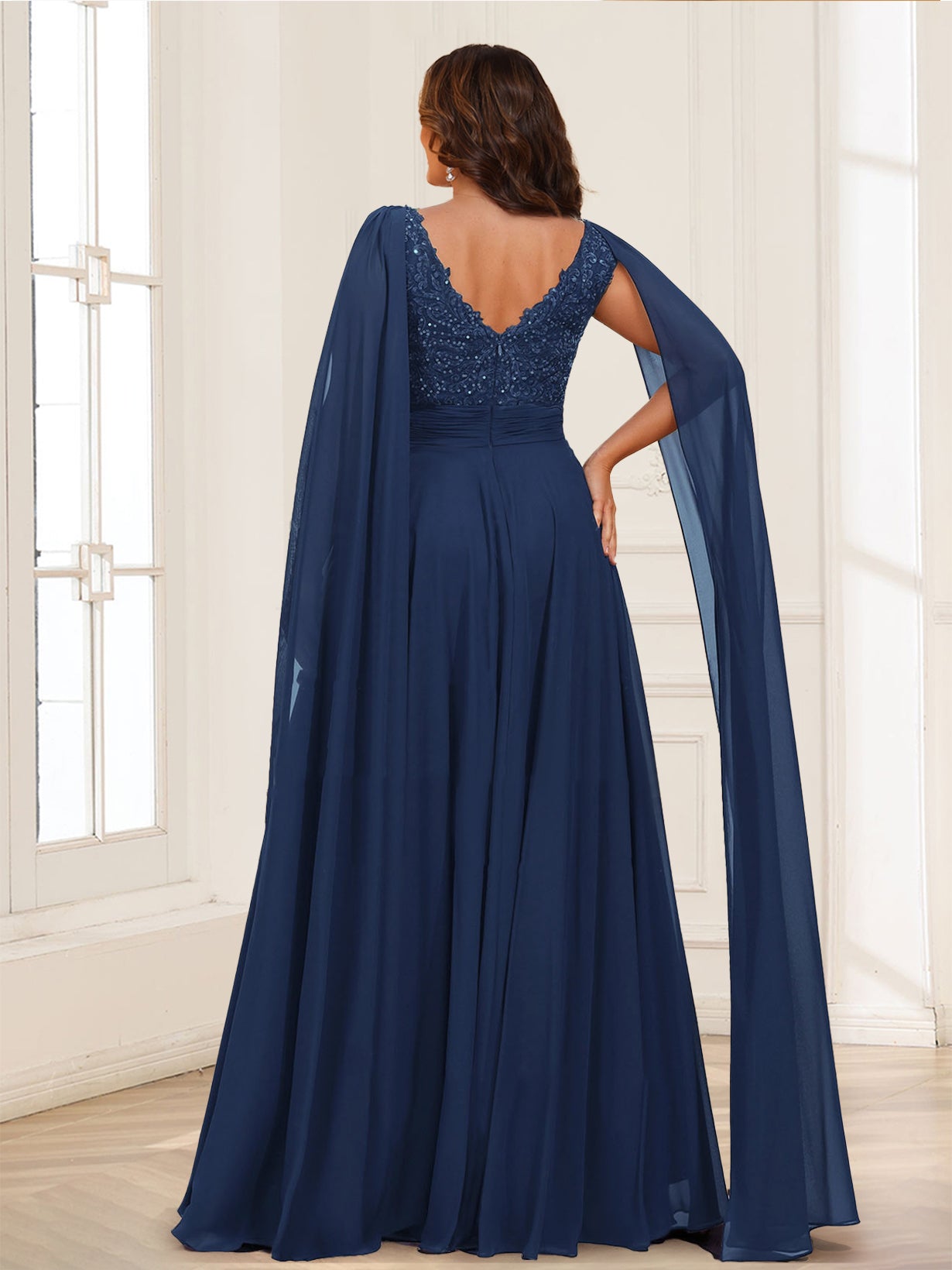 #Toland 12011660 A-Line/Princess V-Neck Plus Size Chiffon Mother of the Bride Dresses With Lace Appliques