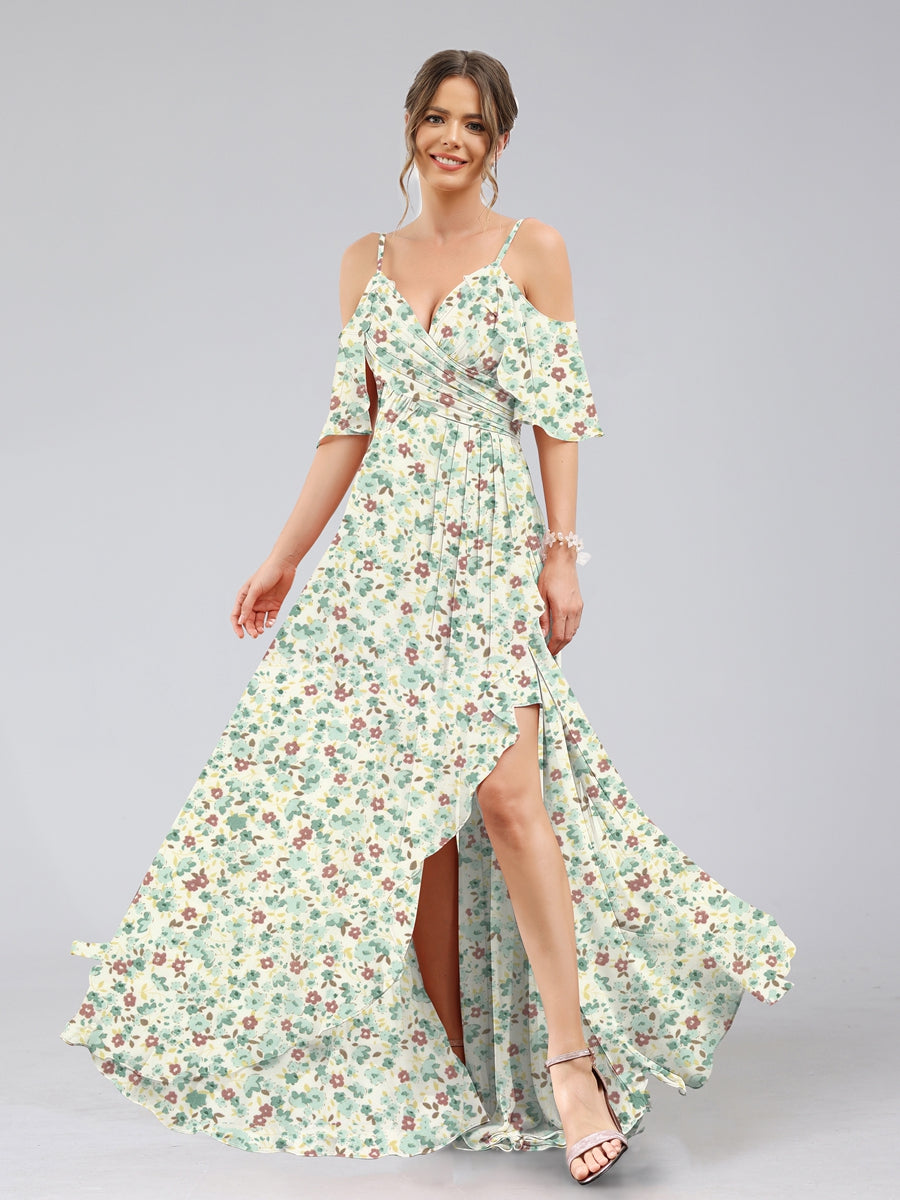 #Essential 99091047 A-Line/Princess Cold Shoulder Short Sleeves Ruffles Floral Bridesmaid Dresses