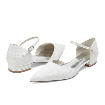 Women's Lace Silk Satin With Ankle Strap Lace Closed Toe Flat Heel Evening Shoes