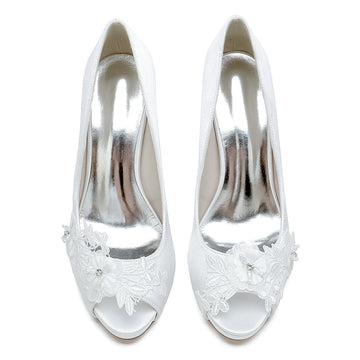 Women's Silk Satin With Ankle Strap Peep Toe Stiletto Heel Wedding Shoes