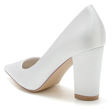 Women's Silk Satin With Ankle Strap Closed Toe Chunky Heel Wedding Shoes