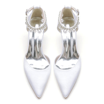 Women's Silk Satin Flat Heel With Closed Toe Rhinestone Wedding Shoes