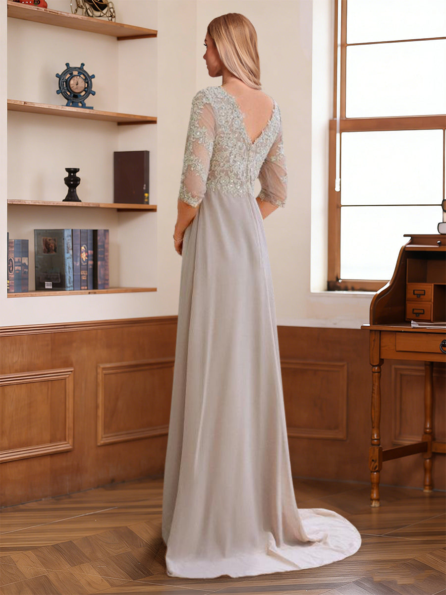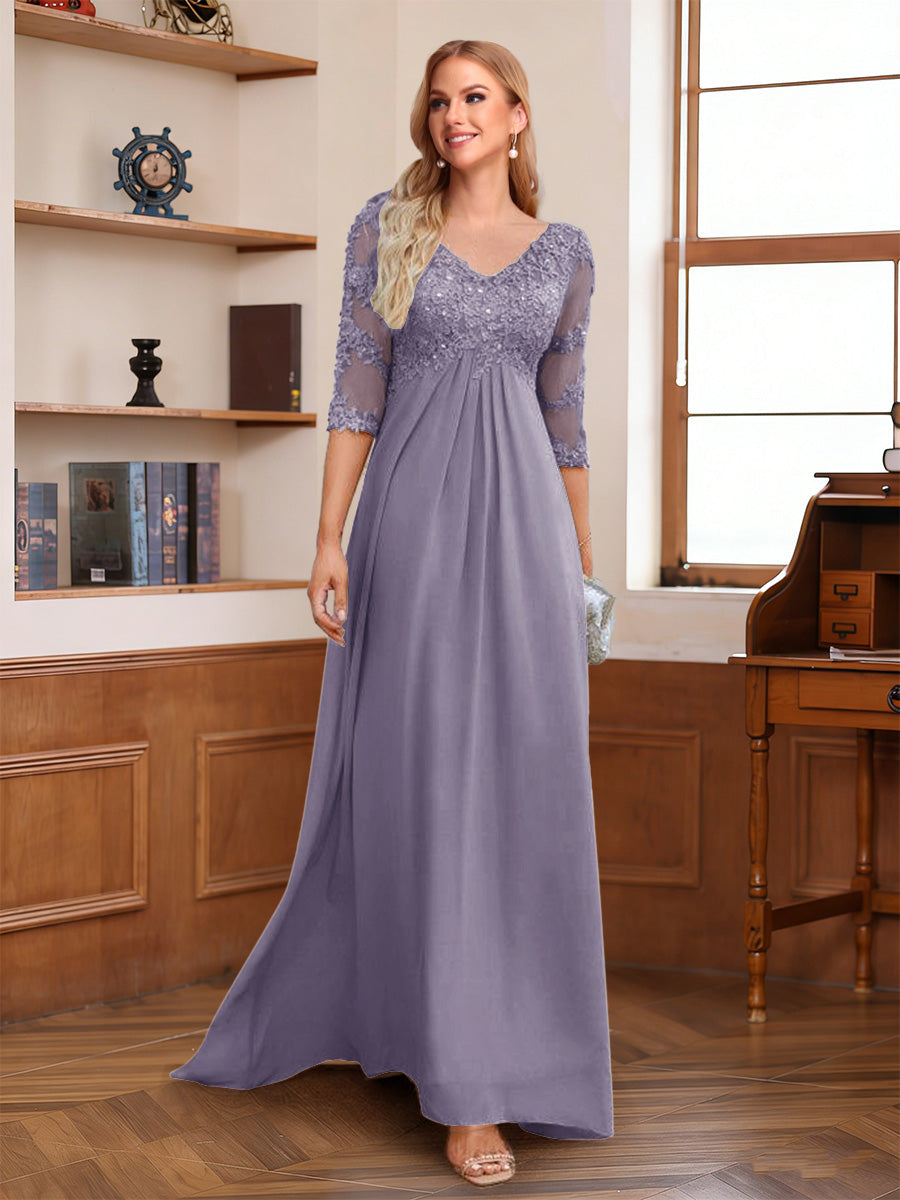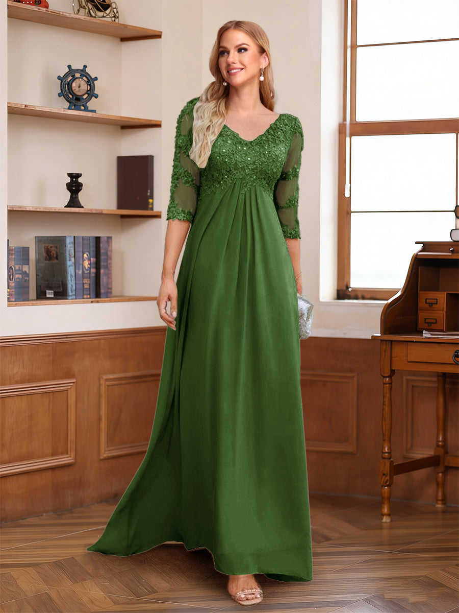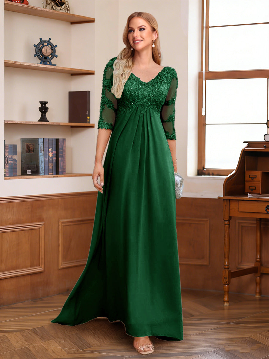 #Page 12011845 A-Line/Princess V-Neck Half Sleeves Floor-Length Mother of the Bride Dresses with Lace & Sequins