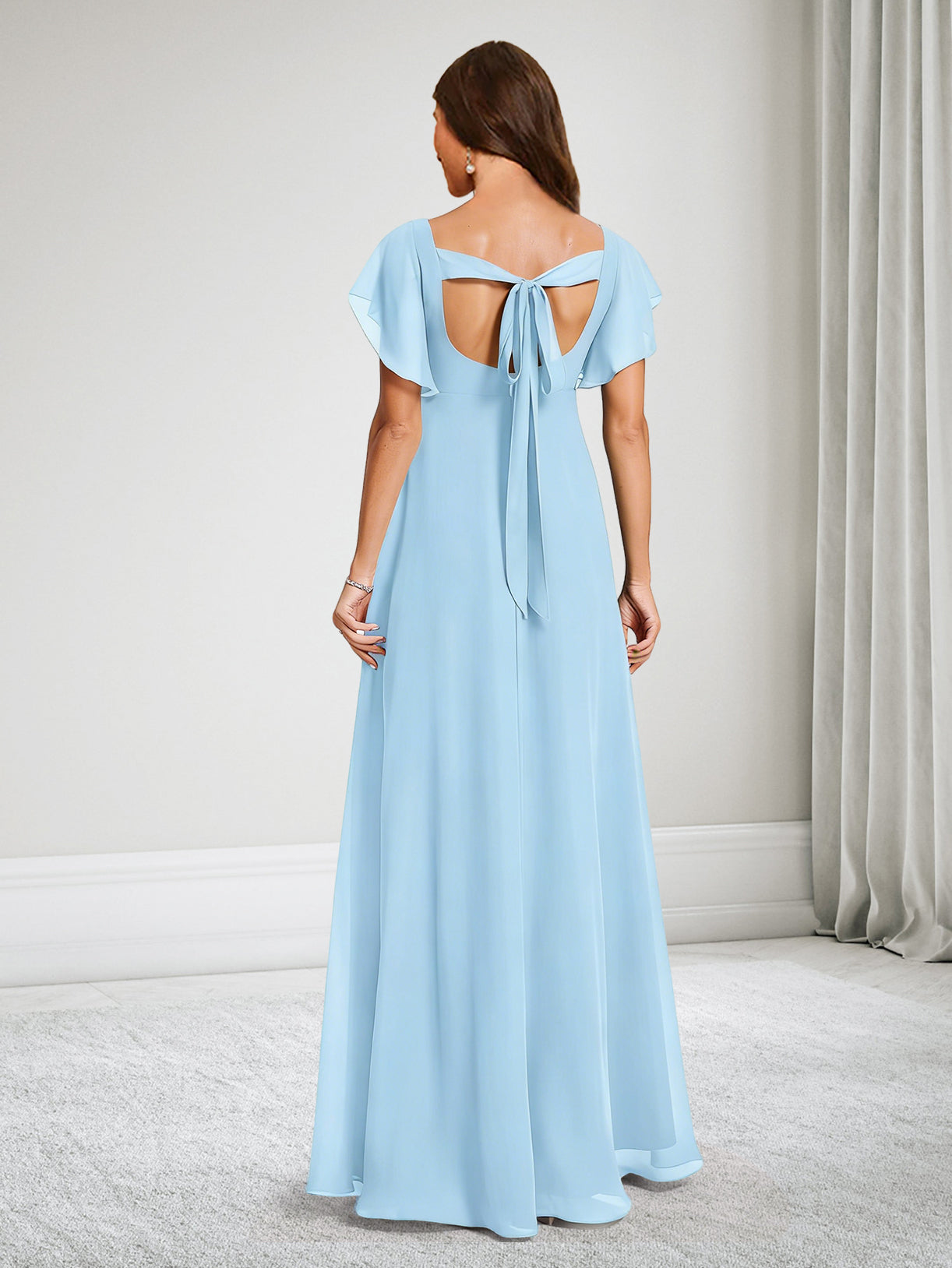 #Rhys 9910182 Chiffon A-Line V-Neck Floor-Length Baby Shower Bridesmaid Dresses With Ruffles