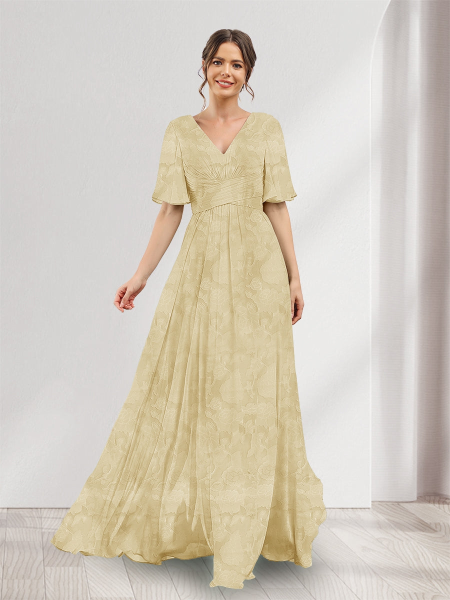 #Laurel 99091089 A-Line V-Neck Half Sleeves Split Side Floral Bridesmaid Dresses With Pockets