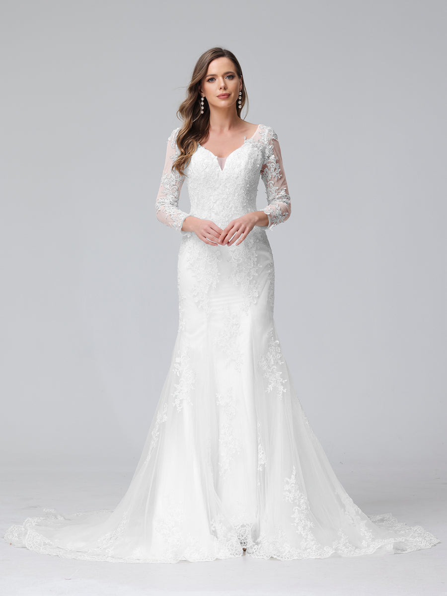 #Everly 9861230 Trumpet/Mermaid V-Neck Long Sleeves Lace Wedding Dresses