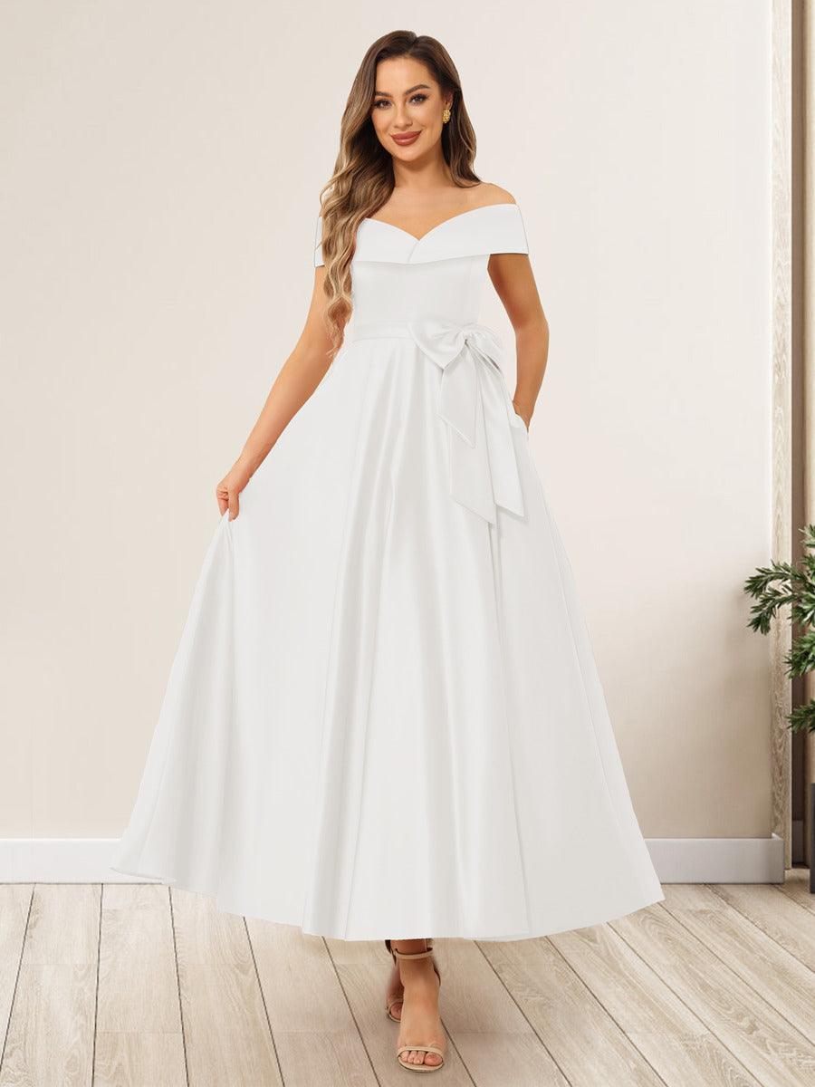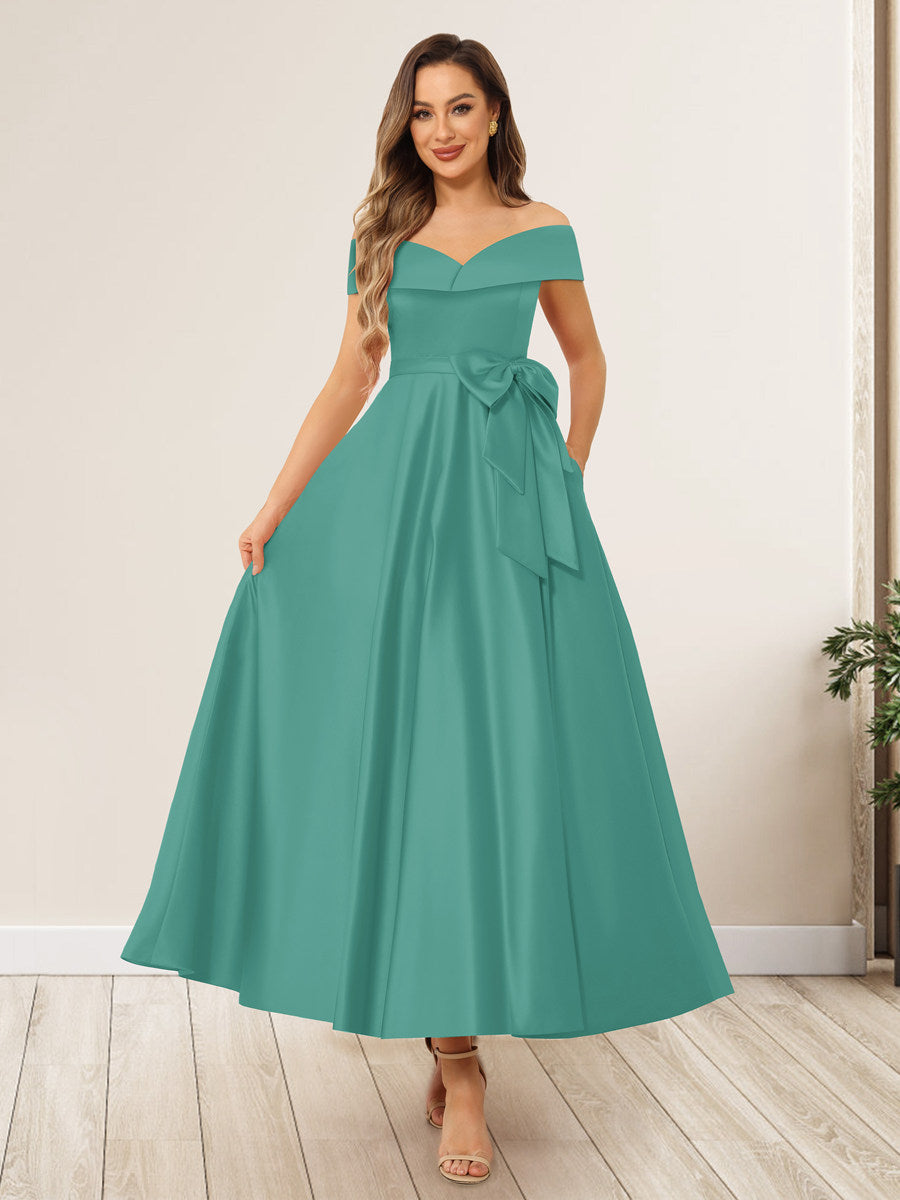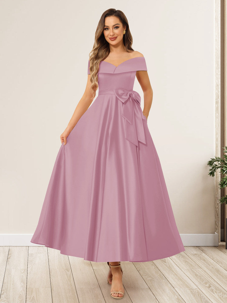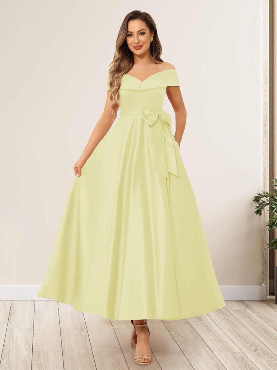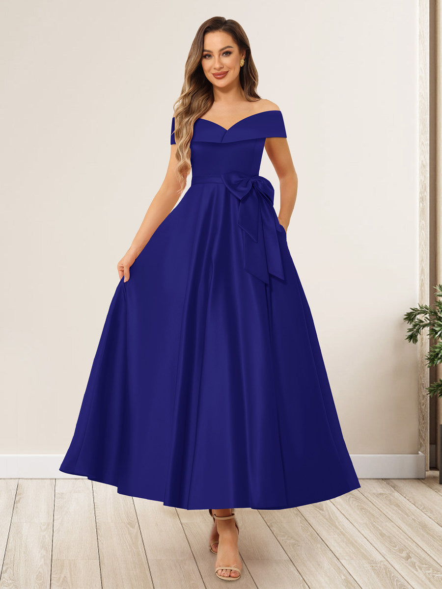 #Londyn A22451719 A-Line/Princess Off-The-Shoulder Sleeveless Long Wedding Guest Dresses with Bow Knot