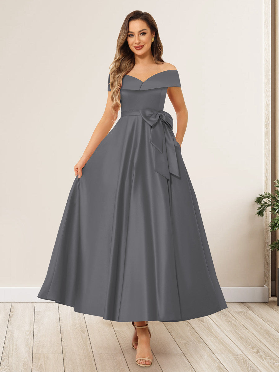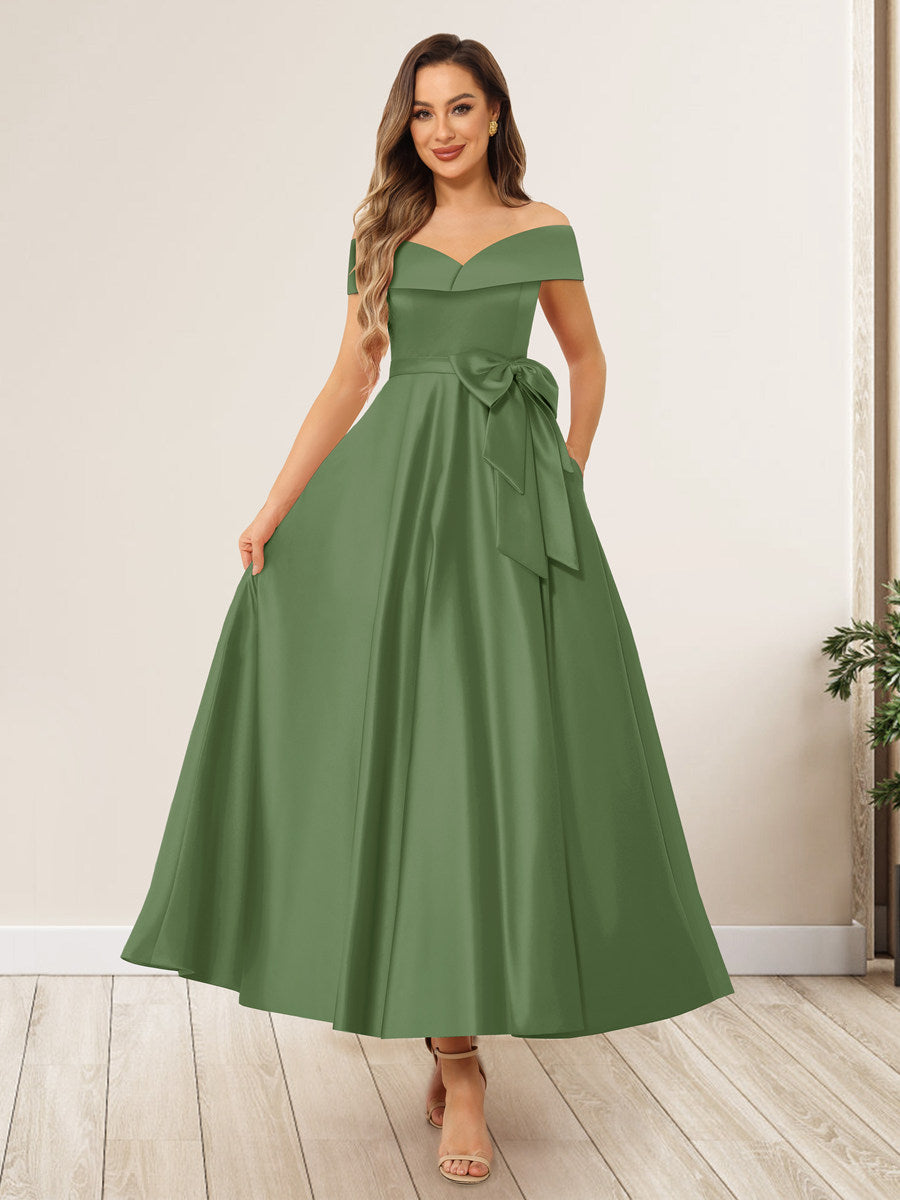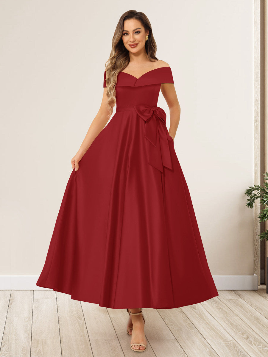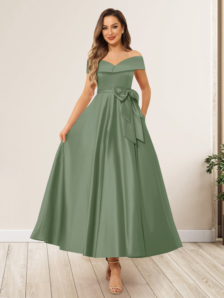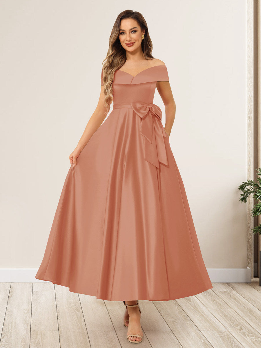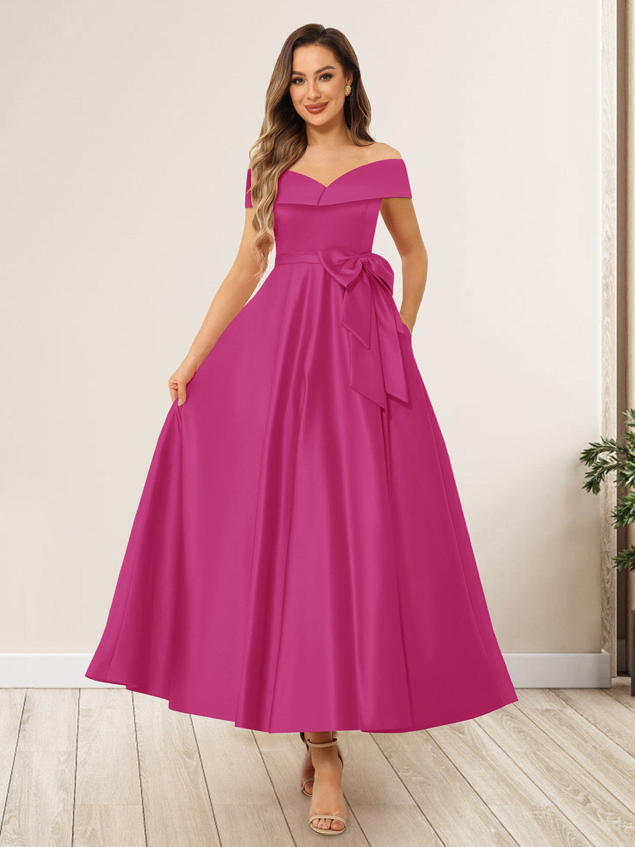 #Londyn A22451719 A-Line/Princess Off-The-Shoulder Sleeveless Long Wedding Guest Dresses with Bow Knot