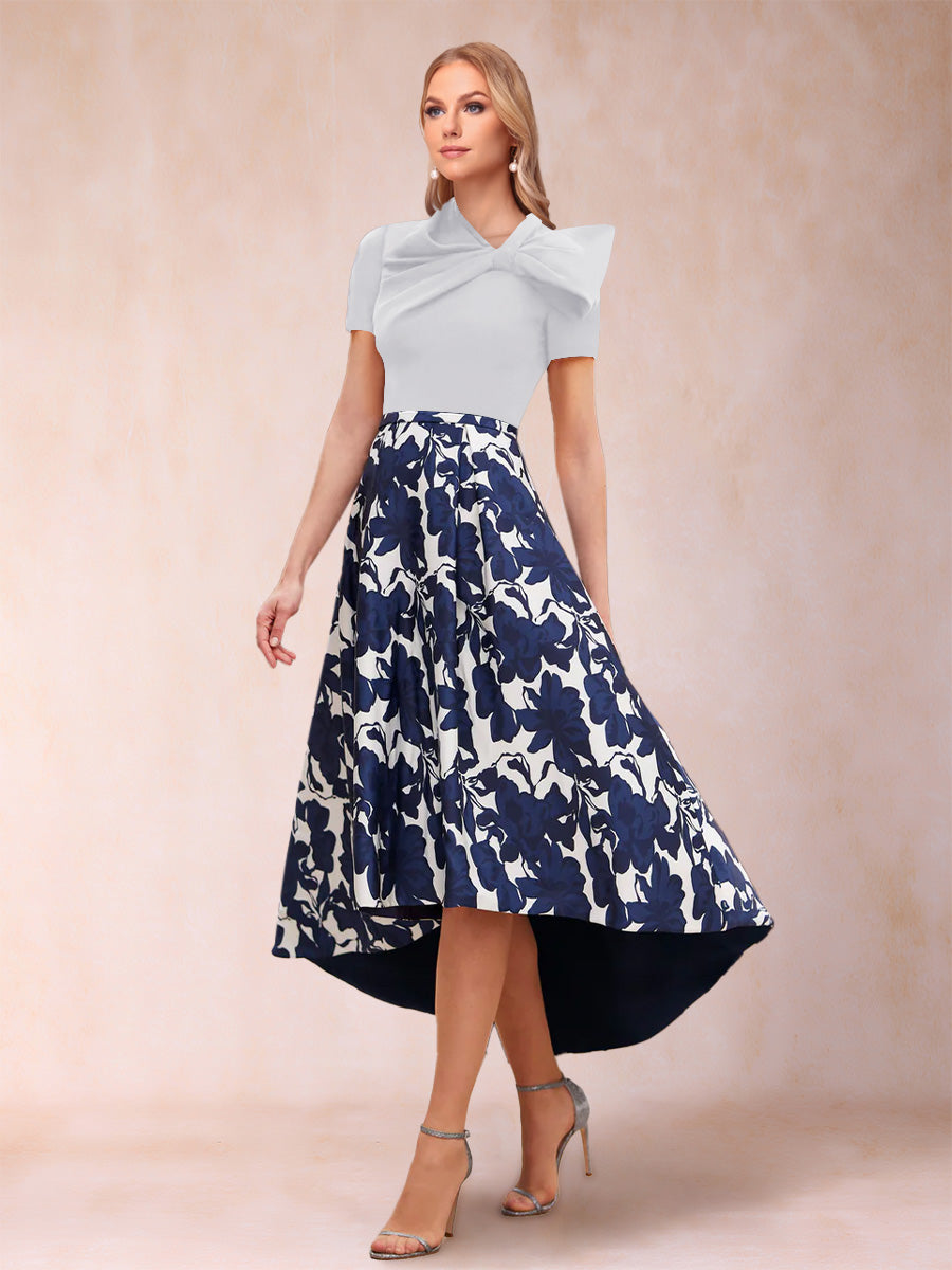 • A-Line/Princess Scoop Short Sleeves Asymmetrical Mother of the Bride Dresses With Printed Flower