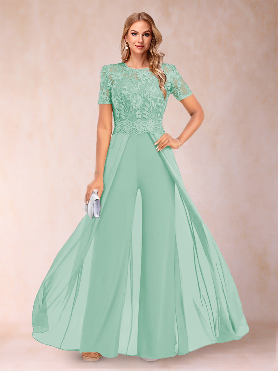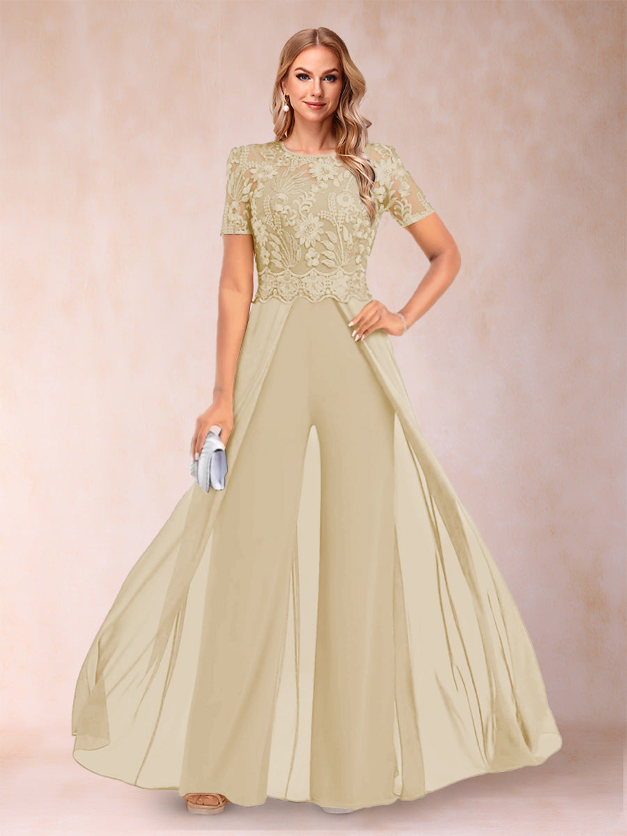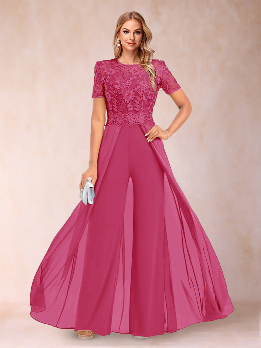 • A-Line/Princess Scoop Short Sleeves Jumpsuit with Applique