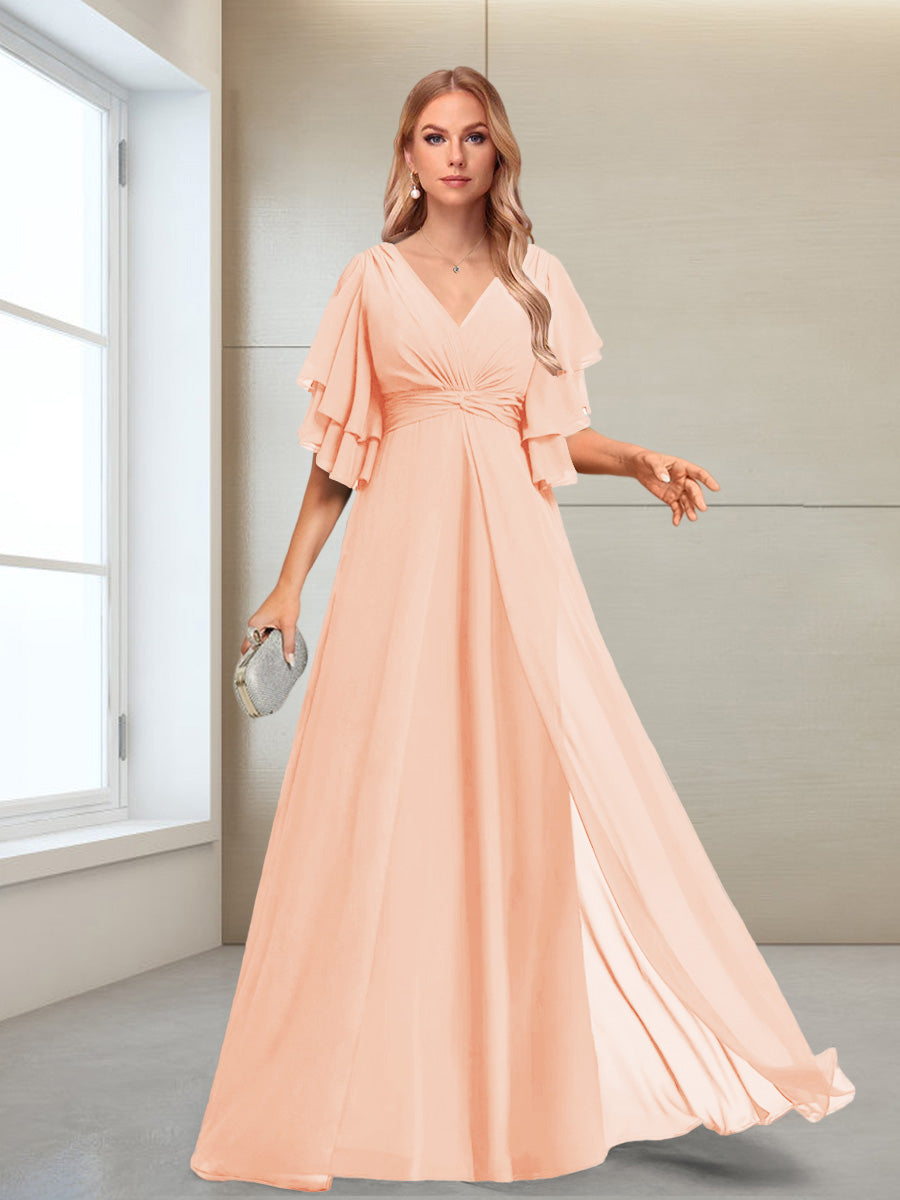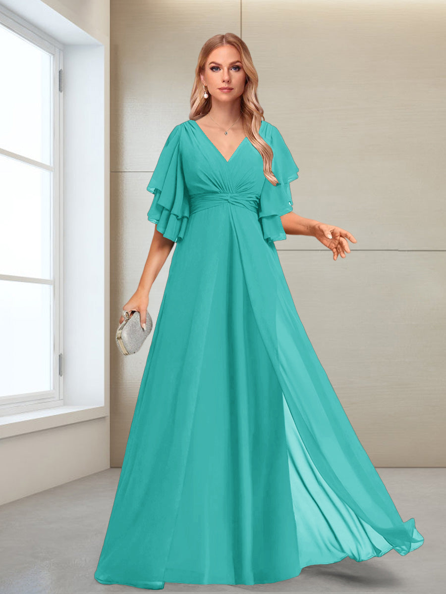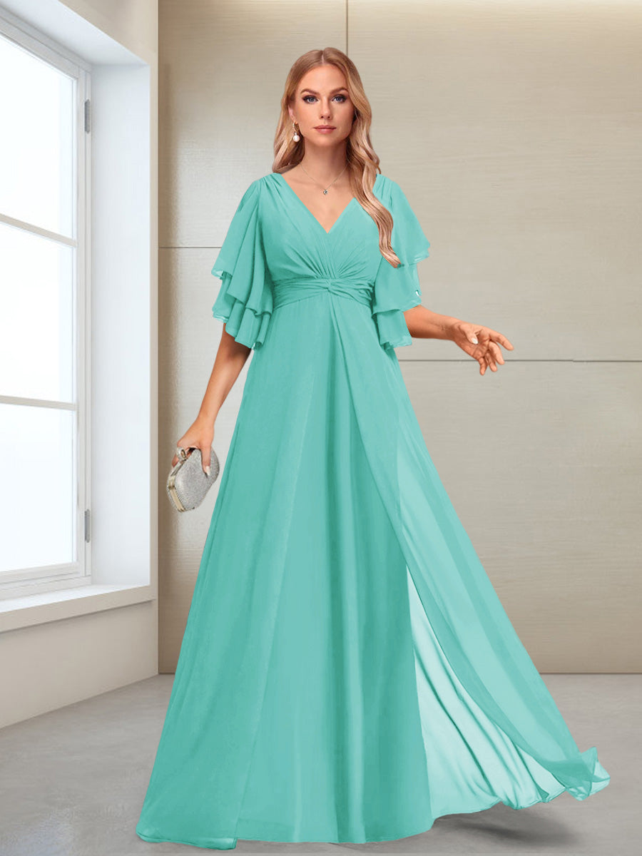 #Astrid 11010032 A-Line/Princess V-Neck Floor-Length Half Sleeves Mother of the Bride Dresses