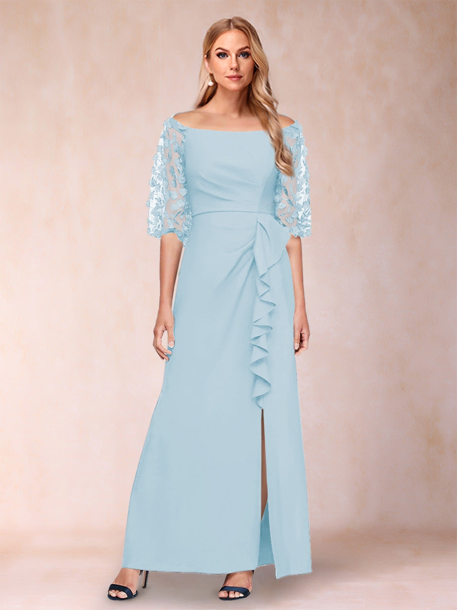 • Sheath/Column Off-the-Shoulder Half Sleeves Mother of the Bride Dresses with Applique
