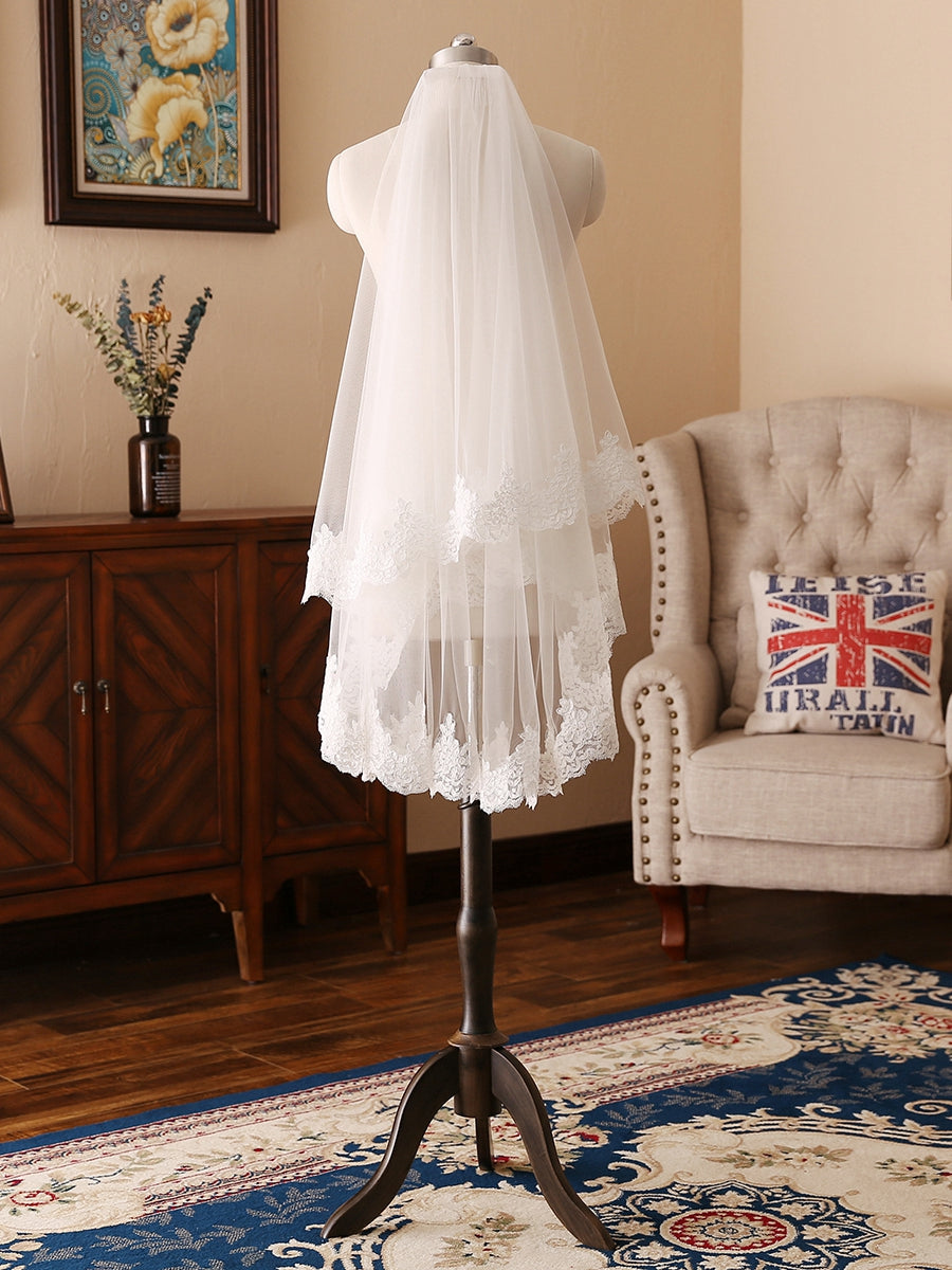 #94251102 Charming 2 Layer Tulle With Lace Wedding Veils