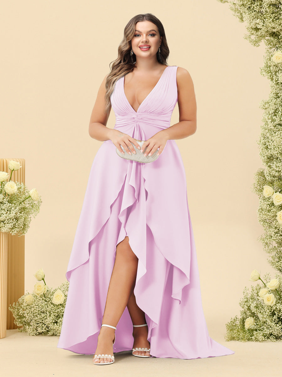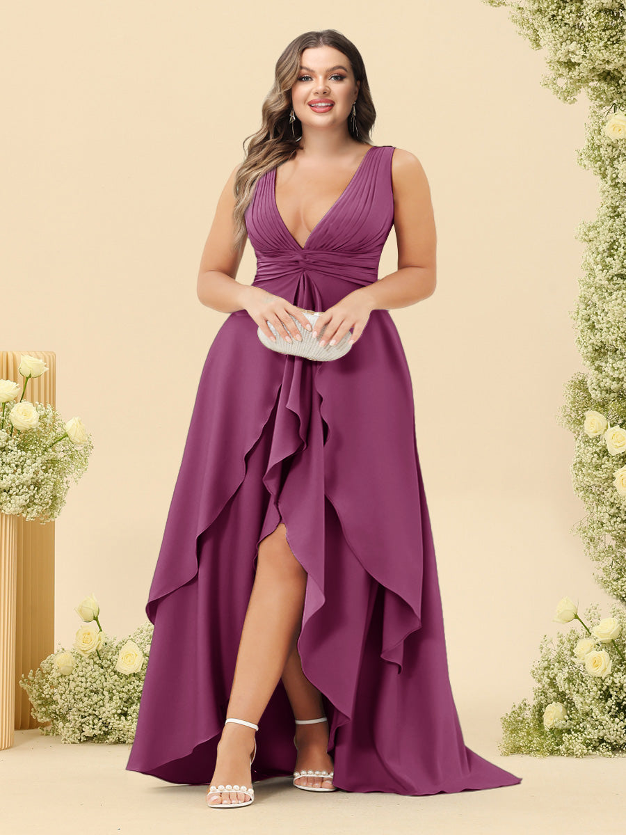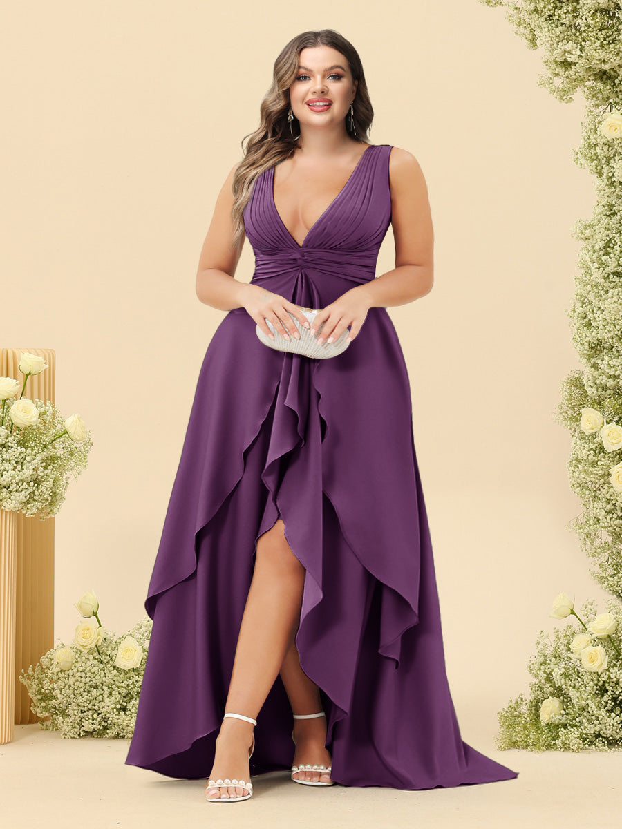 #Thadeus 99071845P A-Line/Princess Asymmetrical V-Neck Plus Size Bridesmaid Dresses With Ruffles