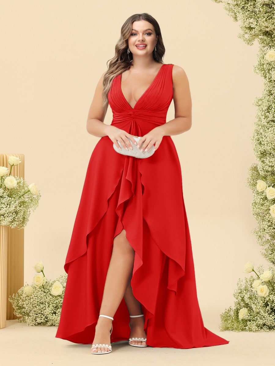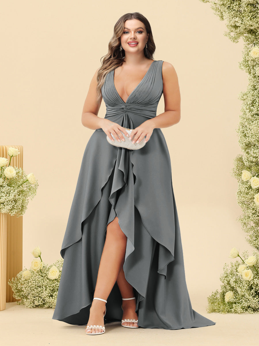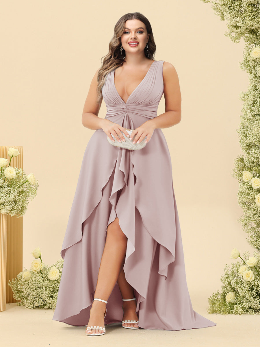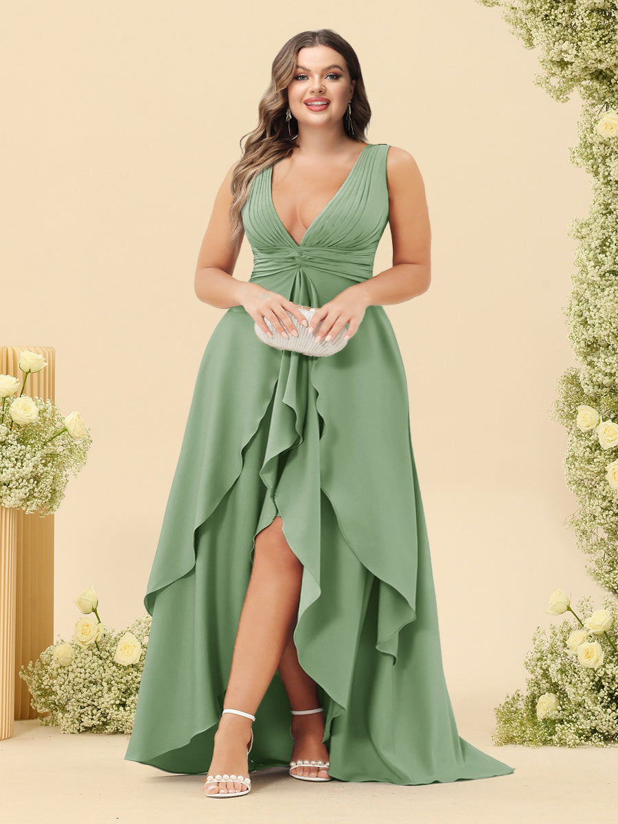#Thadeus 99071845P A-Line/Princess Asymmetrical V-Neck Plus Size Bridesmaid Dresses With Ruffles