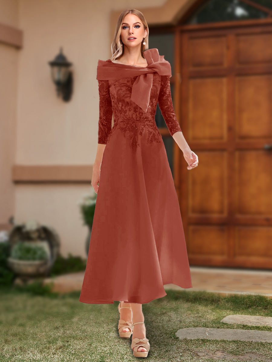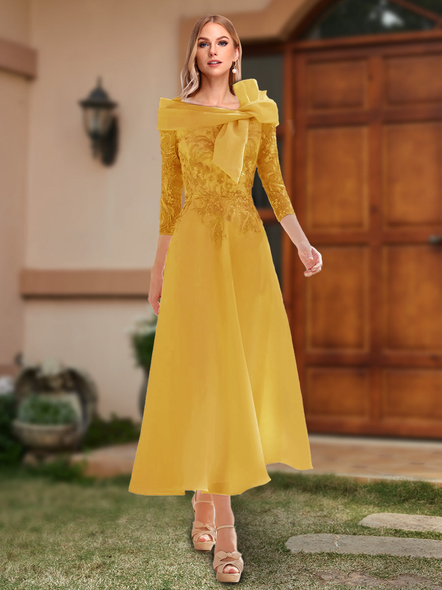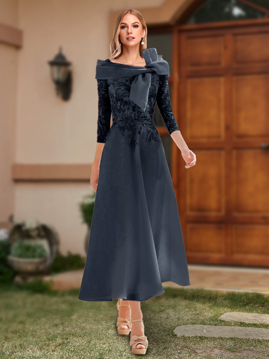 #Ellison 12010115 A-Line/Princess Off-the-Shoulder Ankle-Length Mother of the Bride Dresses With Bow(s) & Appliques