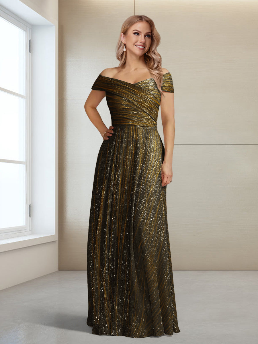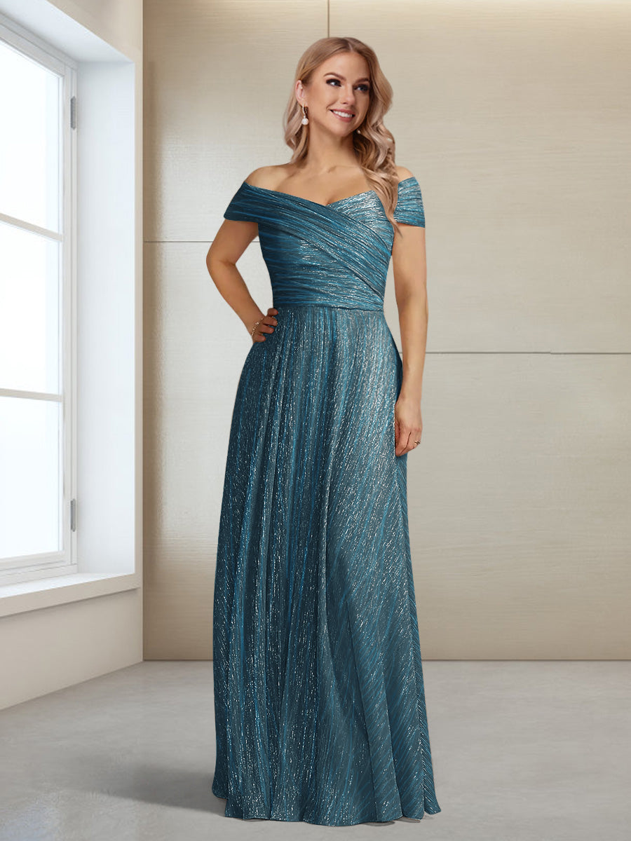 #Zaniyah 11010034 A-Line/Princess Off-the-Shoulder Sleeveless Floor-Length Ruched Mother of the Bride Dresses