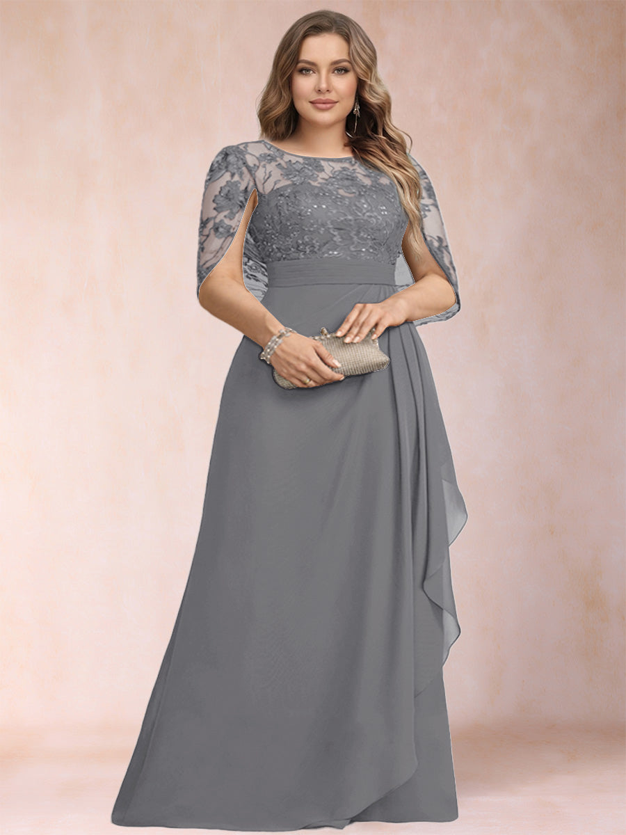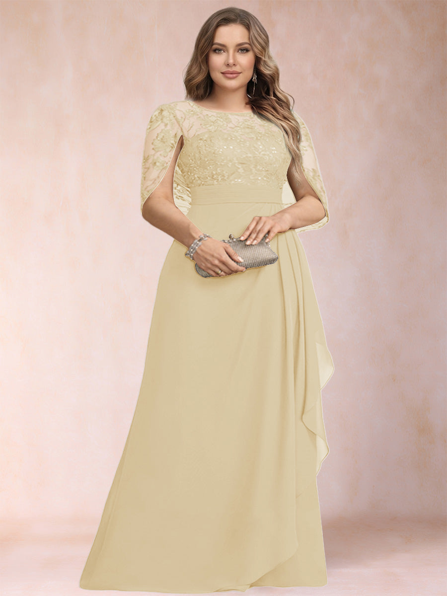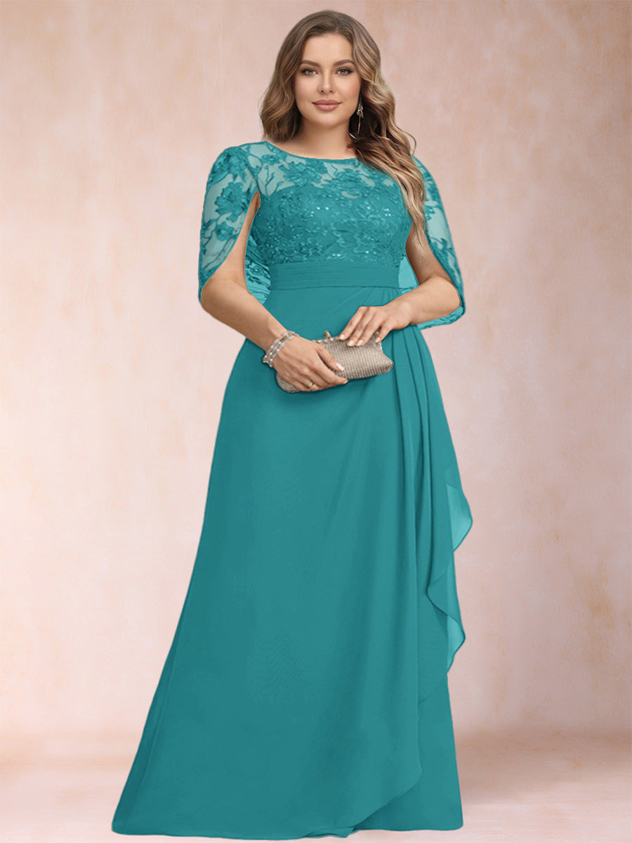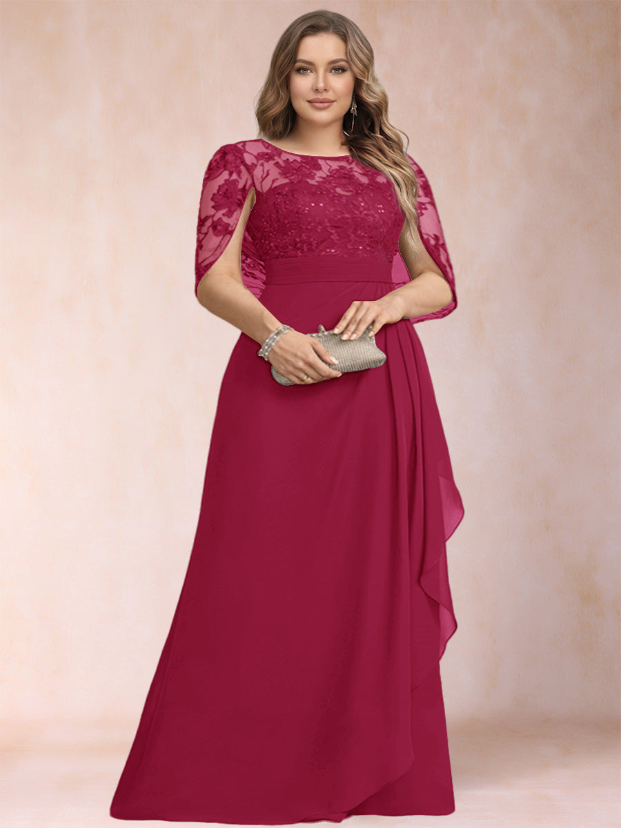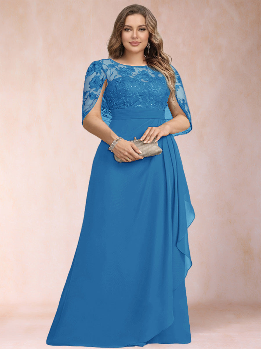 #Bltzr 12010150P A-Line/Princess Scoop Chiffon Plus Size Mother of the Bride Dresses with Appliques & Ruffles