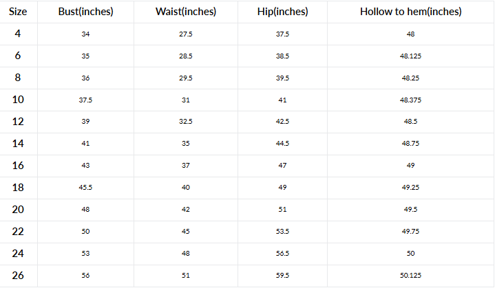 • To fit high heels, we’ll add an extra 1-5 cm onto customized floor-length dresses and dresses with trains.