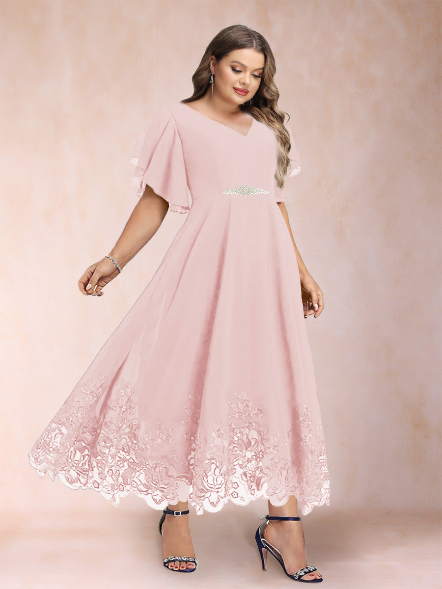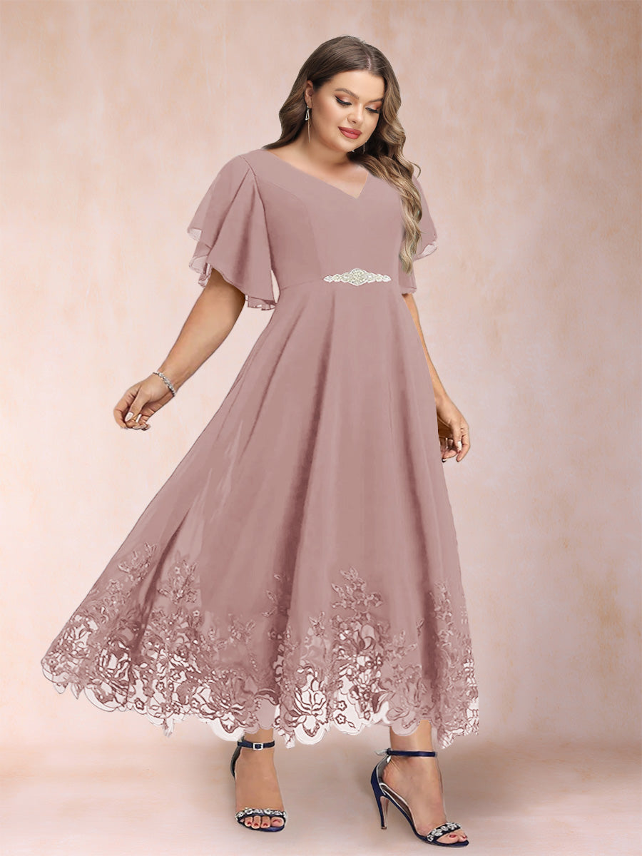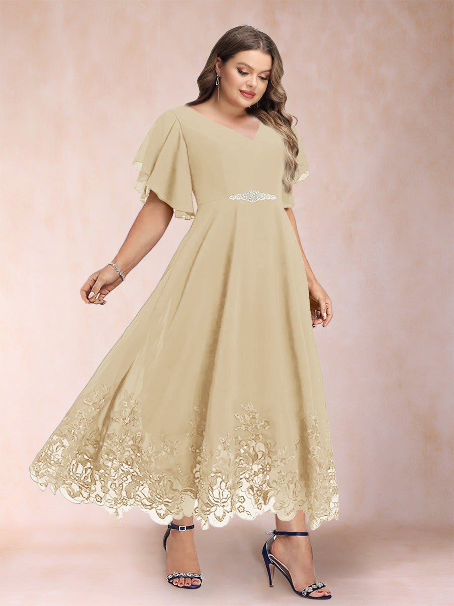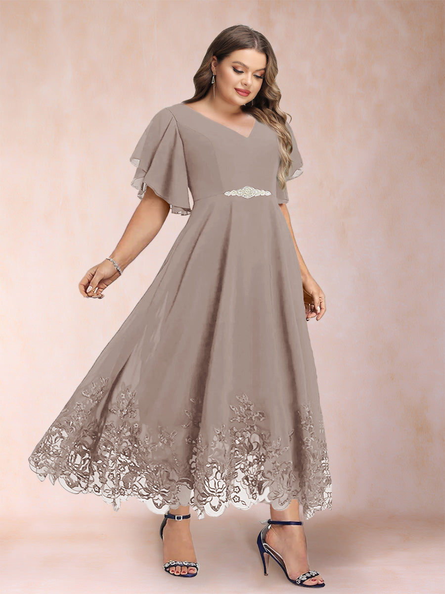 #Callista 12010345P A-Line/Princess V-Neck Half Sleeves Plus Size Mother of the Bride Dresses with Applique
