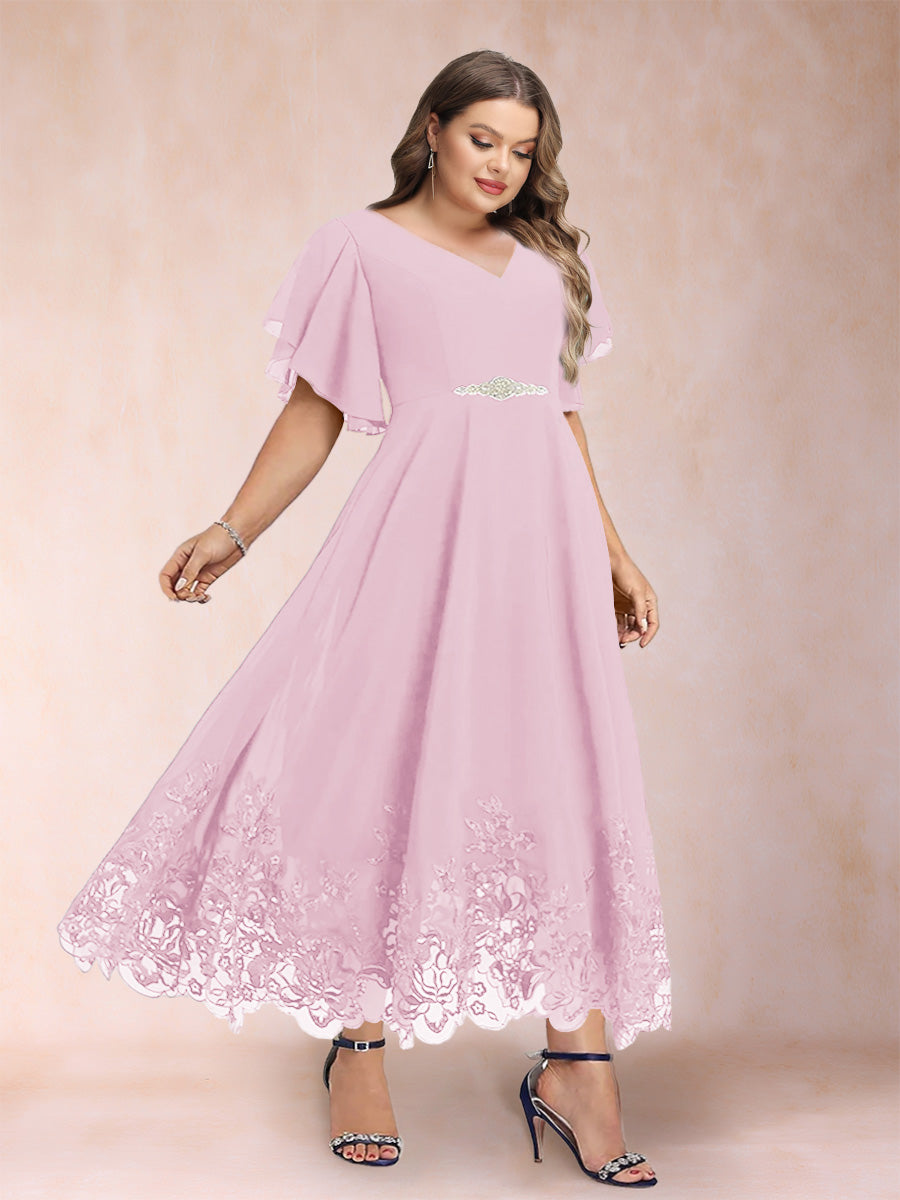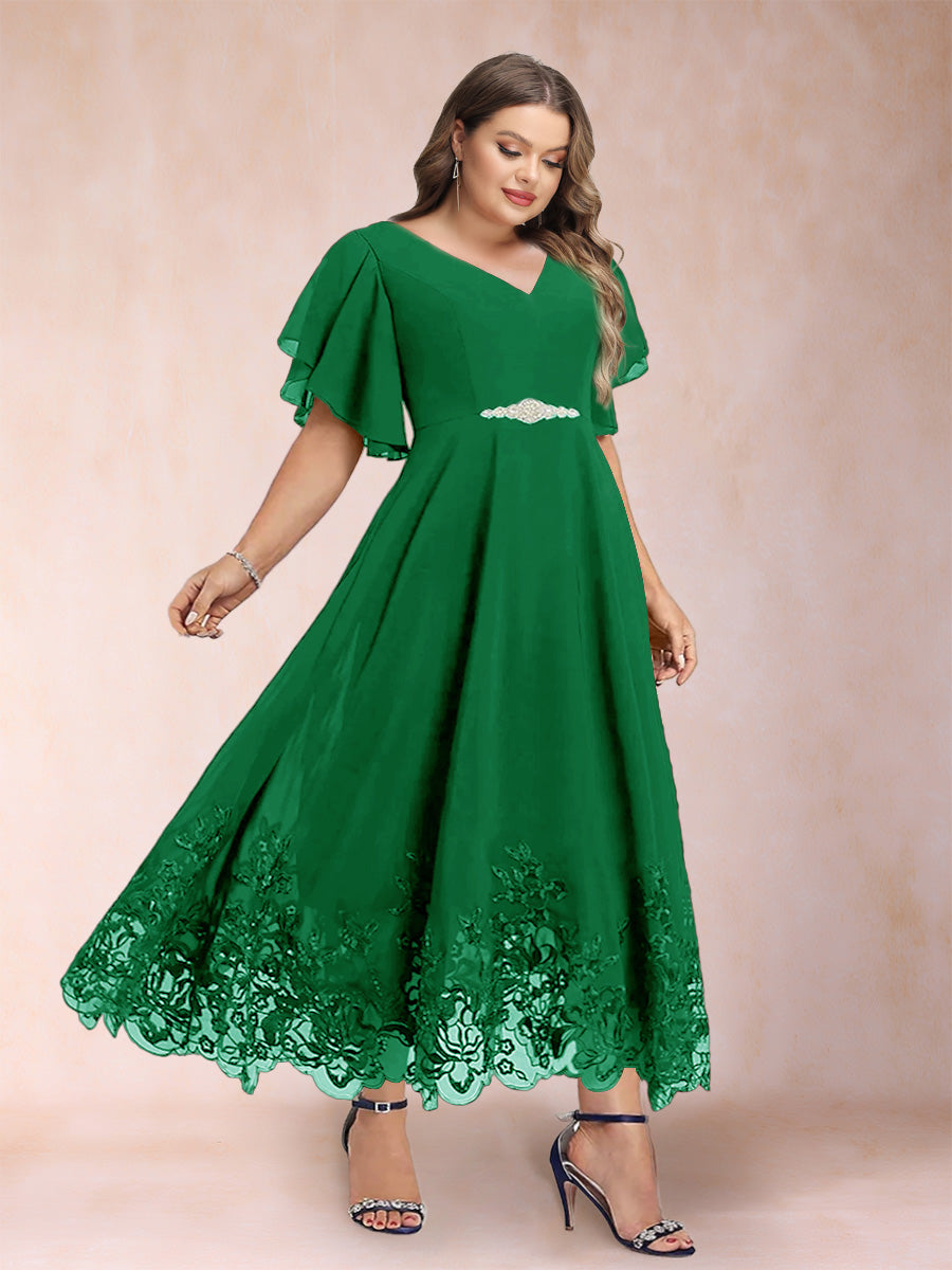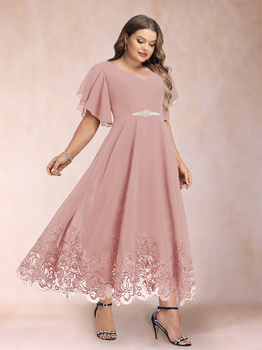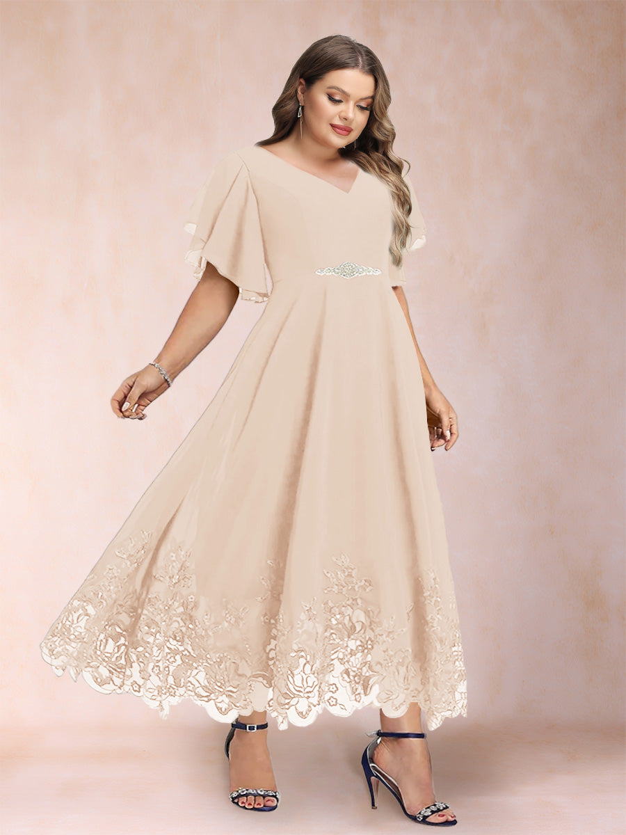 #Callista 12010345P A-Line/Princess V-Neck Half Sleeves Plus Size Mother of the Bride Dresses with Applique