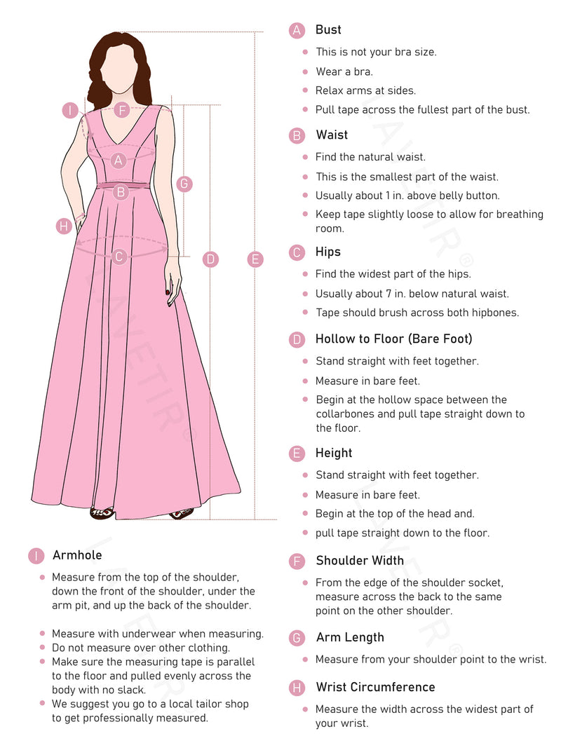 | Size | Bust | Waist | Hips | Hollow to Floor |