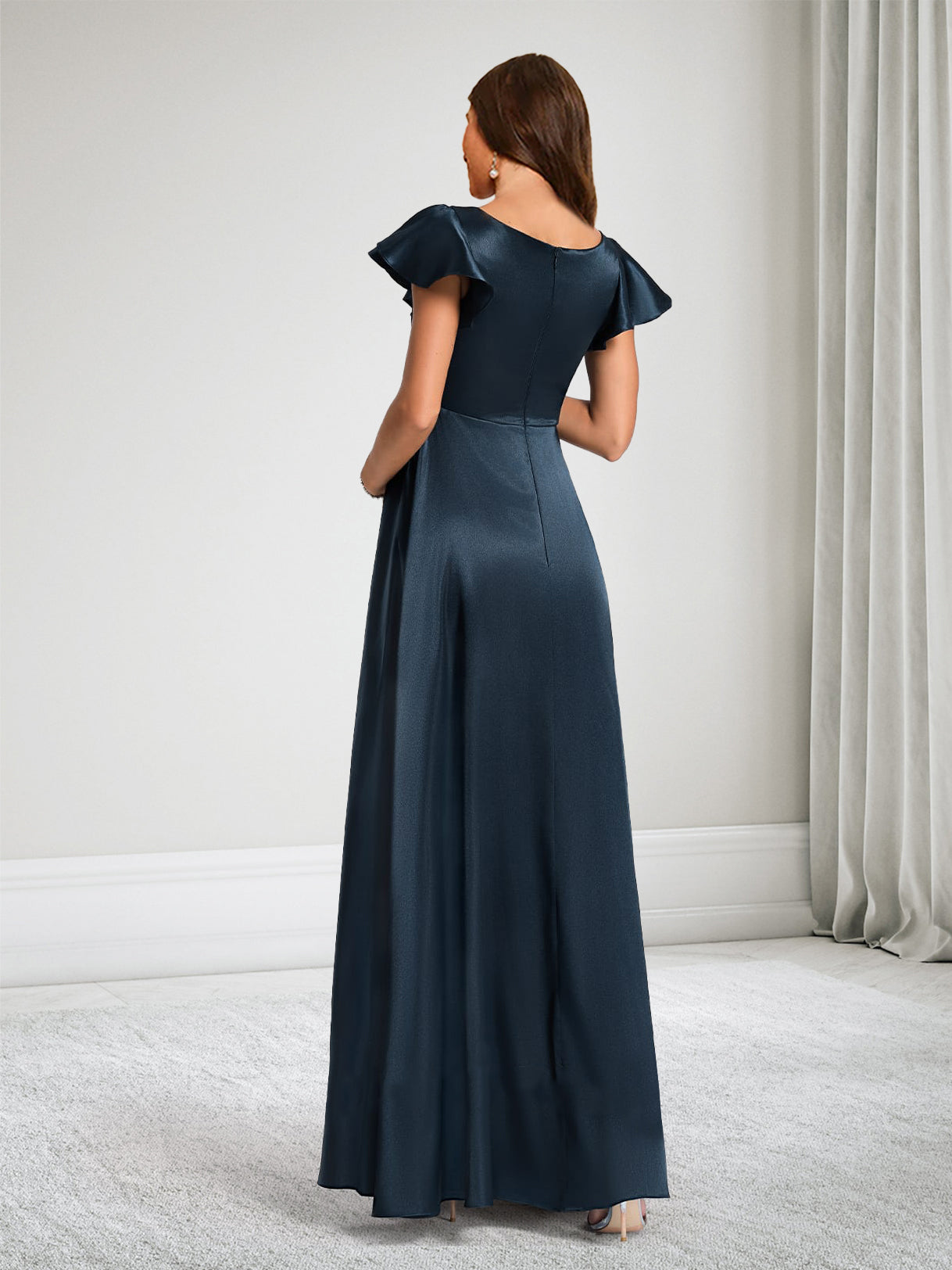 #Raleign 9910204 A-Line V-Neck Short Sleeves Ruched Baby Shower Bridesmaid Dresses With Ruffles