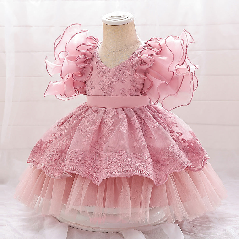 #Maye 9661081 Ball Gown V-Neck Flying Sleeves Flower Girl Dresses with Applique
