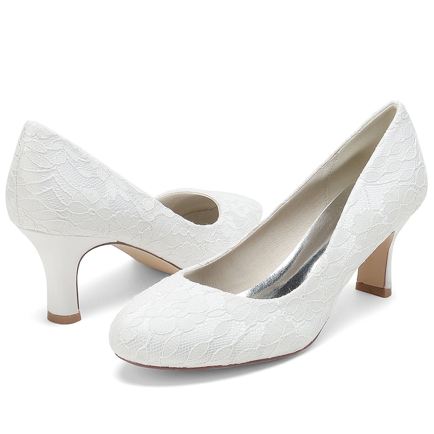 #SH36862X6LS Women's Lace Silk Satin With Lace Closed Toe Spool Heel Party Shoes